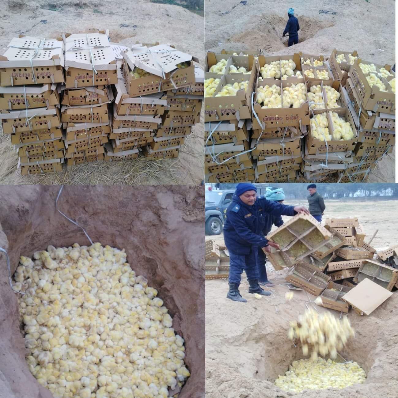 पर्सा प्रहरीद्वारा ४ हजार कुखुराको चल्ला पक्राउ गरि नष्ट