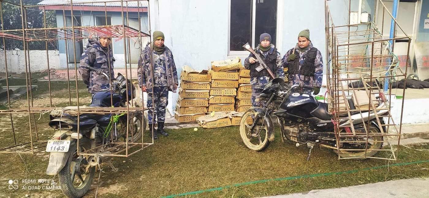 सशस्त्र प्रहरी अलौद्वारा अवैध कुखुराको चल्ला पक्राउ गरि नष्ट
