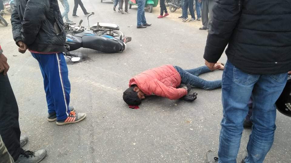 नवलपरासीमा मोटरसाईकल ठोक्किँदा दुई जना घाइते