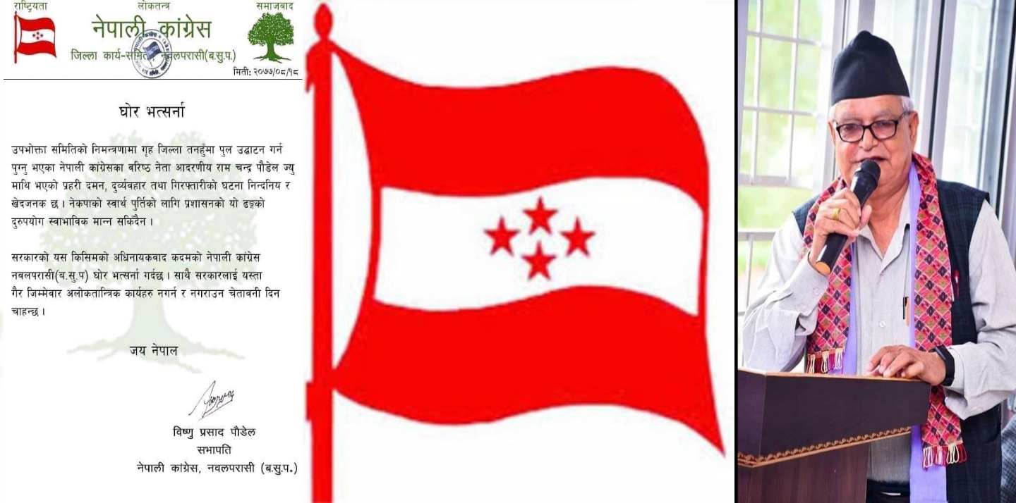 नेता पौडेलमाथिको दुर्व्यवहारप्रती काङ्ग्रेस नवलपरासीद्वारा घाेर भर्त्सना