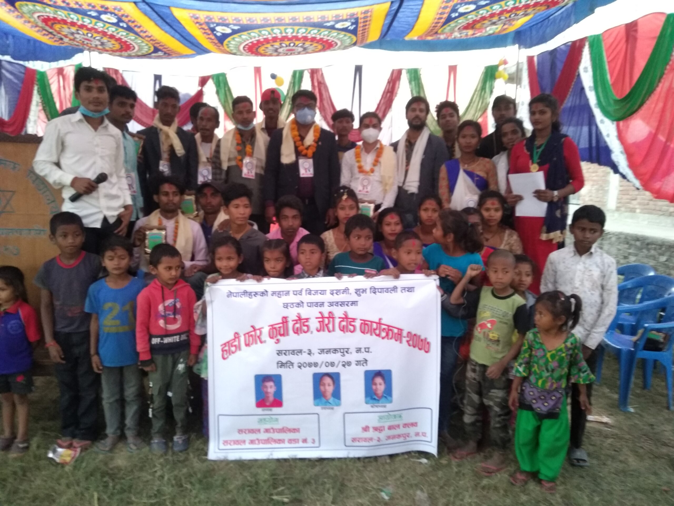 जनकपुरमा घैटाे फाेर, कुर्सी दाैड,जेरी दाैड प्रतियाेगिता सम्पन्न