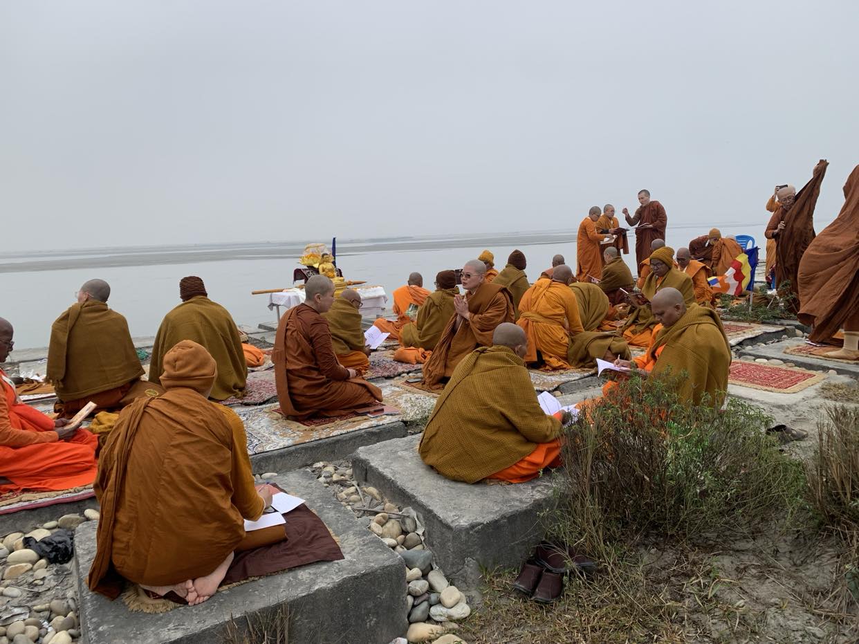 अनोमा घाटमा अन्तर्राष्ट्रिय बौद्ध भिक्षुहरूको सामूहिक शुत्र पाठ