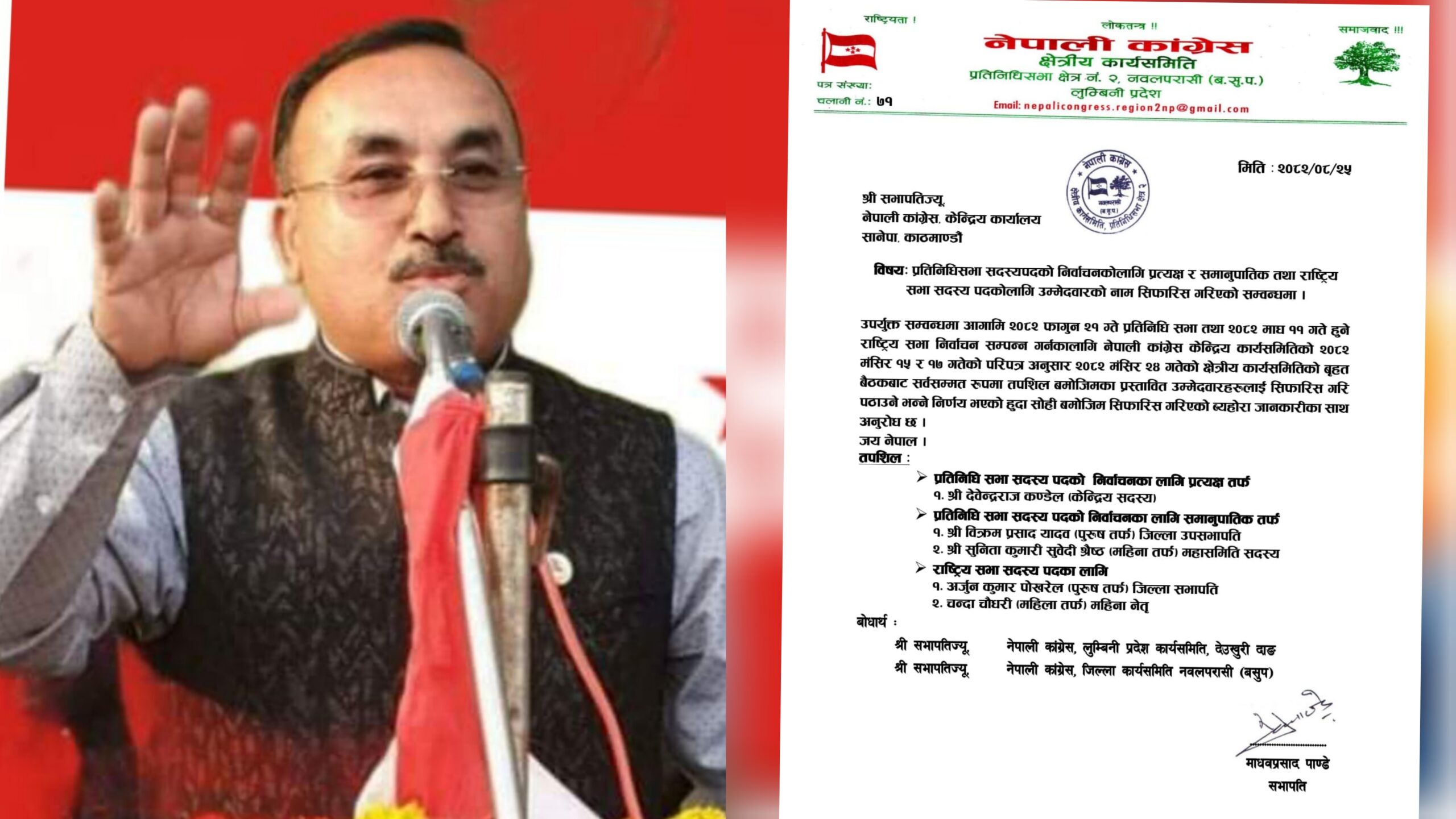 नवलपरासी–२ बाट देवेन्द्रराज कण्डेल प्रतिनिधि सभा उमेदवारमा सर्वसम्मत