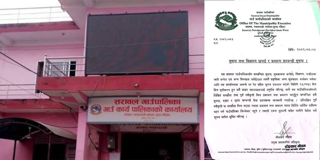 सरावल गाउँपालिकाको चेतावनी : अनधिकृत सूचना–विज्ञापन प्रसारण गरे भुक्तानी रोकिने