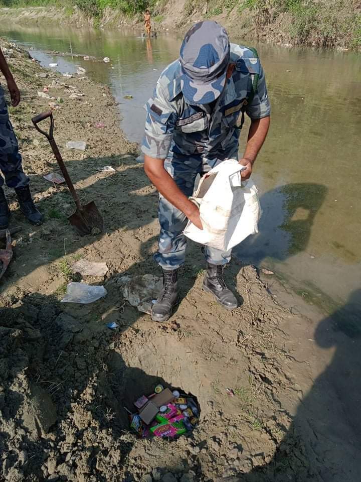 नन्दु यादव कार्तिक १६ नवलपरासी पश्चिम नवलपरासीमा सशस्त्र प्रहरीकाे सक्रियताले दिनानुदिन विभिन्न किसिमका अबैध सामानहरु धमाधम पक्राउ पर्न थालेका छन ।यसै गरि सशस्त्र प्रहरी बल नेपाल सुरक्षा वेश सेमरीबाट आई.डि.नं.२४५३ का स.प्र.नि. खडक बहादुर खड्काको कमाण्डमा खटिएको गाडी मोवाईल टोलिले सुस्ता गाउँपालिका-१ बरुवा चोक स्थित अबैध रुपमा भारतबाट नेपालतर्फ ल्याउँदै गरेको अवस्थामा रु.११,१५०।- बराबरको १२७ प्याकेट पटाका बरामद गरी अाज स्थानिय भद्रभलाद्मी तथा पत्रकारको रोहवरमा खाडल खनि सुरक्षित साथ नष्ट गरिएको सुचना अधिकारी राेेशन घिमिरे ले जानकारी दिनु भयाेे । राष्ट्रिय दैनिक राष्ट्रिय दैनिक एक लोकप्रिय नेपाली समाचार पोर्टल हो। हामी सत्य तथ्य निश्पक्ष र सन्तुलित समाचार सम्प्रेषण गर्ने तर्फ उद्दत छौँ । हाम्रा टोल,समाज, शहर वा आम जनताका चुलो चौको देखि सदन सम्म अथवा समाजका उदाहरणीय ब्यक्ति, रास्ट्रका पहरेदार हरेक बिषय हाम्रा समाचारका श्रोत हुन् । आवाज बिहिनहरुको आवाजमा साथ अनि सरकारको बेथितिमा हाम्रो निगरानी हुनेछ । हामी राजनितीको रंग भर्दैनौं तर राजनितीको चेतना अवश्य भर्ने छौं ।