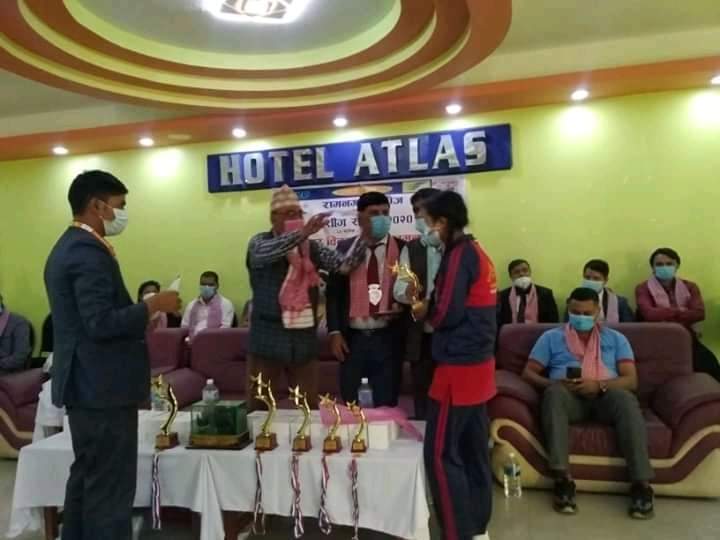 योगेश बस्याल / भुमही कार्तिक २९ जेसि देवकला खनालको संयोजकत्व एवं रामनगर जेसिज वर्ष २०२० का अध्यक्ष भोजराज पौडेलको अध्यक्षता तथा सुनवल नगरपालिका उपप्रमुख दधिराम अर्यालको प्रमुख आतिथ्यतामा पुरस्कार वितरण तथा शुभकामना आदानप्रदान एवम् समापन समारोह सम्पन्न भएको छ । रामनगर जेसिजले सप्ताहव्यापी कार्यक्रम अन्तर्गत सरसफाई तथा वृक्षारोपण कार्यक्रम, ज्येष्ठ नागरिकलाई खाद्यान्न तथा फलफुल वितरण,निबन्ध लेखन प्रतियोगिता तथा चित्रकला प्रतियोगिता सम्पन्न गरेको छ। निबन्ध लेखन प्रतियोगितामा प्रथम स्थान प्राप्त गर्न सफल ज्ञान ज्योति मा.वि.भुमहीको विद्यार्थी दिवस पाण्डे, द्वितीय स्थान प्राप्त गर्ने बसन्तपुर जेनिथ बोर्डिङ कि विद्यार्थी सुस्मा चौधरी,तृतीय स्थान प्राप्त गर्ने जगन्नाथ मा.वि. भुमहीकी विद्यार्थी सलिना अधिकारी साथै सान्त्वना स्थान प्राप्त गर्ने आदर्श मा.वि. खोखारपुराकि विद्यार्थी पार्वती चौधरी, त्यस्तै चित्रकला प्रतियोगितामा प्रथम स्थान प्राप्त गर्न सफल विद्यासागर प्रसिद्ध अंग्रेजी बोर्डिङका विद्यार्थी दुर्गा बर्मा, द्वितीय स्थान प्राप्त गर्न जगन्नाथ मा.वि. भुमहीकी विद्यार्थी शिवानी श्रेष्ठ, तृतीय स्थान प्राप्त गर्न बसन्त मा.वि. बासाका विद्यार्थी हरिश स्वर्णकार तथा सान्त्वना स्थान प्राप्त गर्ने रामनगर ऐकेडेमी भुमहीका विद्यार्थी बिजय पाण्डेलाई पुरस्कार वितरण गरिएको थियो । कार्यक्रममा सुनवल नगरपालिका उपप्रमुख दधिराम अर्यालले शुभकामना मन्तव्य व्यक्त गर्दै रामनगर जेसिजले गरेका क्रियाकलापहरुको प्रशंसा गर्दै विश्वव्यापी माहामारीको रुपमा फैलिएको कोभिड १९ लाई परास्त गर्न सबैजना मिलेर अगाडि बढ्न आग्रह गर्नुभएको छ । साथै कार्यक्रममा वडाध्यक्ष एवं सुनवल नगरका प्रवक्ता कृष्णप्रसाद देवकोटा, वडाध्यक्ष देविलाल डुम्रे,वडाध्यक्ष भेषनारायण चौधरी,रामनगर जेसिजका संस्थापक अध्यक्ष डोलराज भण्डारी,रामनगर जेसिज वर्ष २०१६ का अध्यक्ष बलराम चापागाई, रामनगर जेसिज वर्ष १०१८ का अध्यक्ष भोजराज चापागाई, रामनगर जेसिज वर्ष २०१९ का अध्यक्ष हिमादेवी न्यौपाने, सुद्धोदन जेसिजका अध्यक्ष चुडामणि डुम्रे, तिलोत्तमा जेसिजका अध्यक्ष लोक प्रसाद भण्डारी, नवलपुर जेसिजका अध्यक्ष नारायण प्रसाद न्यौपाने, सिद्धार्थ जेसिजकी अध्यक्ष तुलसा भुसाल, रामग्राम जेसिजका अध्यक्ष सन्दिप अग्रहरी, बुटवल लेडि जेसिजकी अध्यक्ष कल्पना पाण्डे, देवदह जेसिजका अध्यक्ष सुरेन्द्र अधिकारी, कपिलवस्तु जेसिजका अध्यक्ष मजोज कुमार खत्री, सुनवल जेसिजका अध्यक्ष उत्सव पौडेल र साथै बर्दघाट प्रस्तावित जेसिजका अध्यक्ष राजु न्यौपानेले शुभकामना मन्तव्य व्यक्त गर्नुभएको थियो । साथै