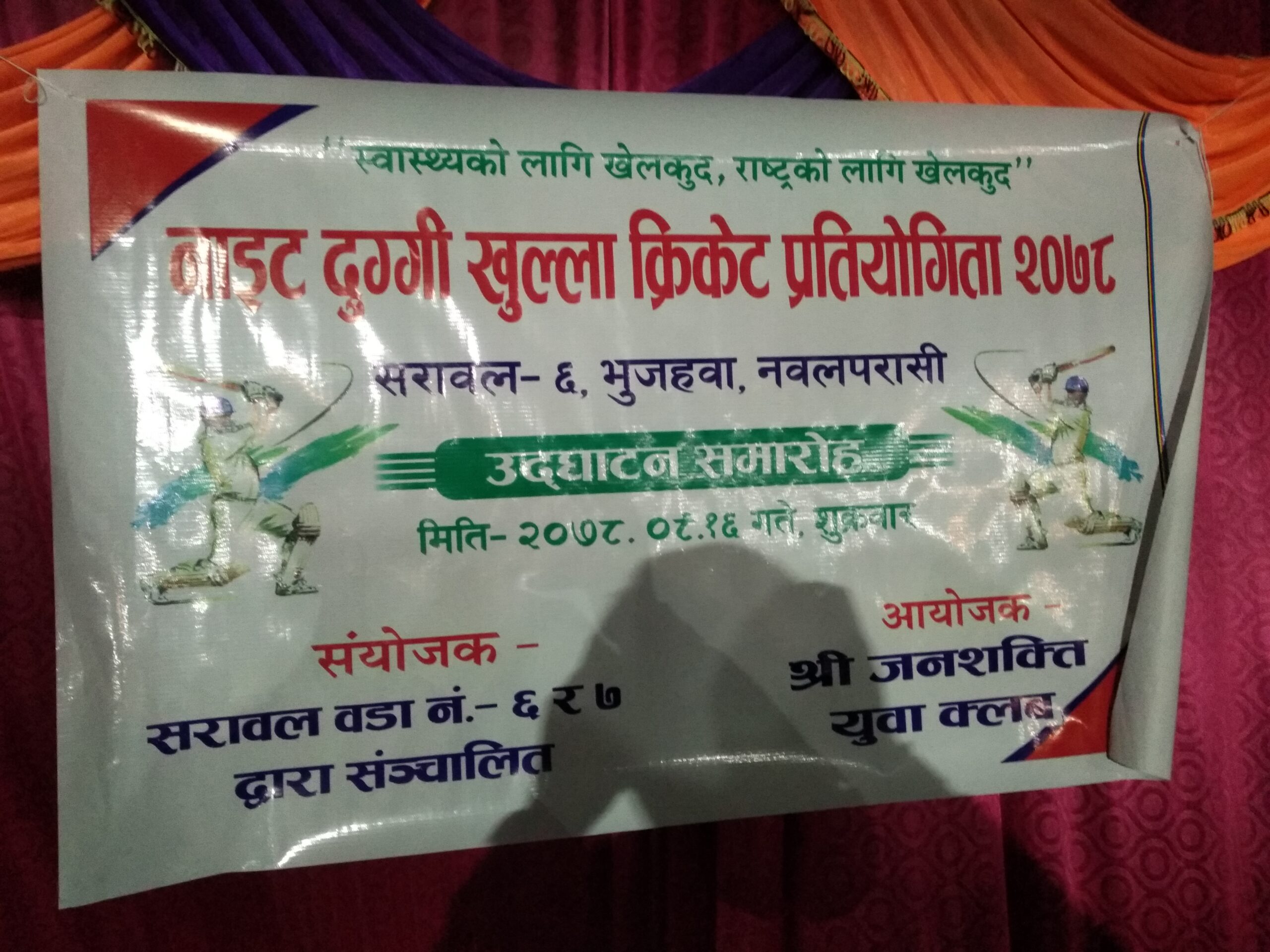 उमेश बि.क / नवलपरासी , १६ पुस पश्चिम नवलपरासीको सरावल गाउँपालिका वडा नं. ६ भुजहवामा नाइट दुक्कि खुल्ला क्रिकेट प्रतियाेगिता सुरु भएको छ। स्वास्थ्यकाे लागि खेलकुद राष्ट्रिकाे लागि खेलकुद मुल नाराकाे साथ जनशक्ति युवा क्लब अध्यक्ष साबिर अलिकाे अध्यक्षता तथा सरावल गाउँपालिका अध्यक्ष राधेश्याम चाैधरीकाे प्रमुख अातिथ्यतामा क्रिकेट प्रतियाेगिता सुरु भएको हाे। खेलकुद कार्यक्रमलाई सम्बाेधन गर्दै गाउँपालिका अध्यक्ष चाैधरीले खेलकुद मानव स्वास्थ्यकाे लागि लाभदायक छ । यसले संगठित गर्नुकाे साथै अात्मियता प्रदान गर्दछ। युवालाई कुलतबाट बचाउन ठुलाे मद्दत गर्दछ । साथै खेलकुद पनि अन्य बिकासकाे तुलनामा एउटा बिकास हाे। खेलकुद तथा खेलाडी बिकासमा सरावल गाउँपालिकाबाट सधैं सकारात्मक रहि हमेशा साथ र सहयाेग गरिरहने प्रतिबद्धता ब्यक्त गर्नुभएको थियाे। नाइट दुक्कि खुल्ला क्रिकेट प्रतियाेगितामा सरावल गाउँपालिका वडा नम्बर ७ वडा अध्यक्ष हेयात खाँ धुनिया ,वडा नम्बर ६ अध्यक्ष कैलाश यादव, सरावल खेलकुद संस्था अध्यक्ष महेन्द्र चाैधरी ,सचिव दिपक क्षेत्री लगाएतले खेलकुद स्वास्थ्यको लागी धेरै उपयोगी मानिने भएकोले स्थानिय स्तरमा हुदै गरेका खेलकुद र खेलकुदका खेलाडीलाई उत्कृष्ट खेलाडीको रुपमा विकास गरि राष्ट्रिय स्तरमा पुर्याउन सकिए वडाको मात्रै नभई समग्र गाउँपाकिला र जिल्लाकै नाम अगाडी जाने चर्चा गर्नुभएको थियोे । क्रिकेट प्रतियाेगितामा १६ वटा टिमकाे सहभागी रहेको छ । जसमा ८ वटा टिम भारतकाे मिठाैरा ,निचलाैल खड्डा ,सिन्धुरीया , ठुठिबारी लगाएको ठाउँबाट क्रिकेट टिमको सहभागीता रहेको छ। प्रतियाेगितामा प्रथम हुने टिमलाई १२ हजार १ सय मेडल प्रमाणपत्र र दृतिय हुने टिमलाई ८ हजार १ सय मेडल प्रमाणपत्र प्रदान गरिने क्लबका सदस्य धिरज गाैडले जानकारी दिनुभएको हाे। राष्ट्रिय दैनिक राष्ट्रिय दैनिक एक लोकप्रिय नेपाली समाचार पोर्टल हो। हामी सत्य तथ्य निश्पक्ष र सन्तुलित समाचार सम्प्रेषण गर्ने तर्फ उद्दत छौँ । हाम्रा टोल,समाज, शहर वा आम जनताका चुलो चौको देखि सदन सम्म अथवा समाजका उदाहरणीय ब्यक्ति, रास्ट्रका पहरेदार हरेक बिषय हाम्रा समाचारका श्रोत हुन् । आवाज बिहिनहरुको आवाजमा साथ अनि सरकारको बेथितिमा हाम्रो निगरानी हुनेछ । हामी राजनितीको रंग भर्दैनौं तर राजनितीको चेतना अवश्य भर्ने छौं ।
