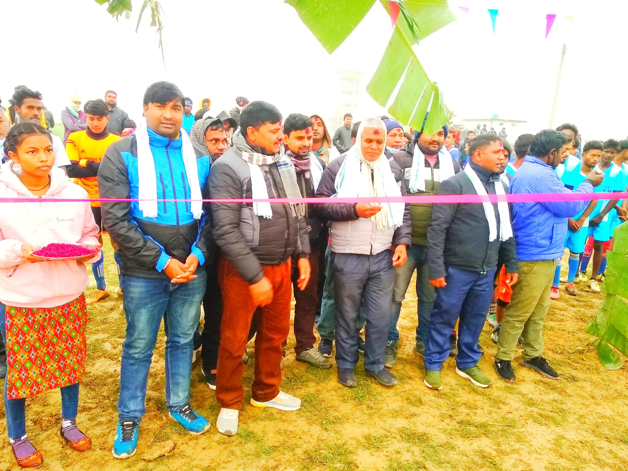 उमेश बि.क / नवलपरासी ,१७ पुस पश्चिम नवलपरासीको सरावल गाउँपालिका वडा नं. ४ हात्तिवनमा माघे संक्रान्तिकाे पावन अवसरमा पाचौं गाउँ स्तरीय फुटबल प्रतियाेगिता सुरु भएको छ । सम्मेमाई सामुदायिक युवा क्लबका अध्यक्ष सन्तराम केवटकाे अध्यक्षता तथा समाजसेवी अकुरुदिन पठानकाे प्रमुख अातिथ्यतामा फुटबल प्रतियाेगिता सुरु भएको हाे। फुटबल प्रतियाेगितामा समाजसेवी अकुरुदिन पठान,नेकपा एमाले सरावल गा.पा अध्यक्ष सुरेश यादव ,वडा नम्बर ४ सचिव अशाेक कुमार पाण्डेय ,नेकपा एमाले नेता सुखाडी प्रसाद चाैधरी,नेपाली काङ्ग्रेसको नेता इन्द्रबहादुर चाैधरी ,नेपाल निजामती कर्मचारी युनियन सरावल गा.पा सचिव राजेश यादव,समाजसेवी सज्जात खान,बुद्ध सागर गुप्ता, राष्ट्रिय दैनिकका कार्यकारी निर्देशक तथा नेपाल प्रेस युनियनका जिल्ला उपसभापति उमेश कुमार बि.क लगाएतले खेलकुद स्वास्थ्यको लागी धेरै उपयोगी मानिने भएकोले स्थानिय स्तरमा हुदै गरेका खेलकुद र खेलकुदका खेलाडीलाई उत्कृष्ट खेलाडीको रुपमा विकास गरि राष्ट्रिय स्तरमा पुर्याउन सकिए वडाको मात्रै नभई समग्र गाउँपालिका र जिल्लाकै नाम अगाडी जाने चर्चा गर्नुभएको थियाे । पाचौं गाउँ स्तरीय फुटबल प्रतियाेगिता प्रथम हुनेलाई नगद ४० हजार मेडल प्रमाणपत्र र दाेस्राे हुनेलाई नगद २५ हजार मेडल प्रमाणपत्र प्रदान गरिने कमलेश कहारले जानकारी दिनुभएको हाे। खेलमा ३० अाेटा पुरुष फुटबल टिमकाे सहभागीता रहेको छ। राष्ट्रिय दैनिक राष्ट्रिय दैनिक एक लोकप्रिय नेपाली समाचार पोर्टल हो। हामी सत्य तथ्य निश्पक्ष र सन्तुलित समाचार सम्प्रेषण गर्ने तर्फ उद्दत छौँ । हाम्रा टोल,समाज, शहर वा आम जनताका चुलो चौको देखि सदन सम्म अथवा समाजका उदाहरणीय ब्यक्ति, रास्ट्रका पहरेदार हरेक बिषय हाम्रा समाचारका श्रोत हुन् । आवाज बिहिनहरुको आवाजमा साथ अनि सरकारको बेथितिमा हाम्रो निगरानी हुनेछ । हामी राजनितीको रंग भर्दैनौं तर राजनितीको चेतना अवश्य भर्ने छौं ।