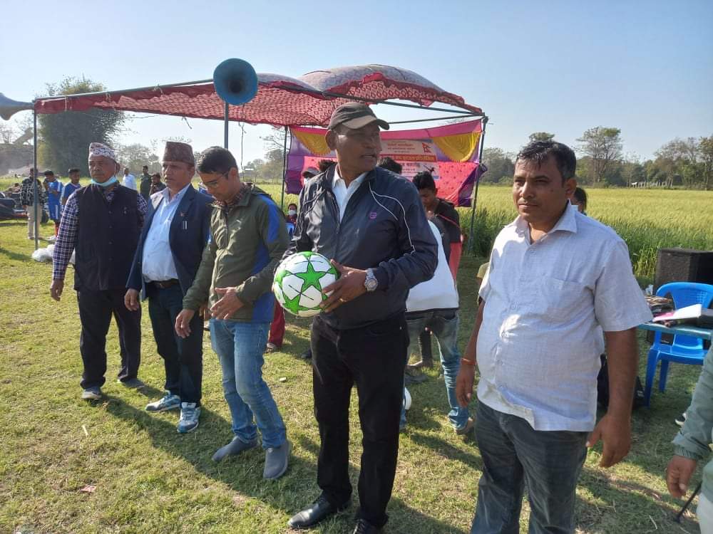 तुलसीराम पौडेल /सियारी, फाल्गुन १६ रुपन्देहीको सियारी गाउपालिका अन्तरगत सियारी खेलकुद समितिको आयोजनामा प्रथम अध्यक्ष कप फुटबल प्रतियोगिता सियारी -७ कनरी खेलमैदानमा सोमबारदेखि शुरु भयो। सोमबार द राइजिङ्ग युवा कलब सियारी -७ र दुर्गा युवा क्लब सियारी -१ का बिच सम्पन्न प्रतियोगितामा दुर्गा युवा क्लबले २ का विरुद्ध ७ गोलको अन्तरले राइजिङ्ग क्लबलाई पराजित गरि बिजय भएको छ। प्रतियोगितामा खेल शुरु भएको चौथो मिनेटमा दुर्गा युवा क्लबका जर्सी नम्बर ७ का आकाश कुवरले पहिलो गोल गरेका थिए। त्यसै गरि द राइजिङ्ग क्लबका जर्सी नम्बर ६ का चन्द्रीका चौधरीले १० औं मिनेटमा गोल गरि बराबर गराएका थिए । त्यसपछि दुर्गा क्लबका जर्सी नम्बर ९ का तारासिह थापाले १७ र ३४ औं मिनेटमा लगातार २ गोल गरेका थिए ।त्यही टिमका जसी नम्बर ११ का सुगम अधिकारीले २६ औं मिनेटमा १ गोल गरेका थिए । सेकेन्ड हाफमा फेरि दुर्गा युवा क्लबका जर्सी नम्बर १२ का विबिध सेन ठकुरीले ३० औं मिनेटमा १ गोल ,सोही टिमका जर्सी नम्बर १० का सतिस गुरुङले ३१ औ मिनेटमा १ गोल र सोही टिमकै जर्सी नम्बर १६ का सुगम ठकुरीले ३३ औ मिनेटमा १ गोल गरेका थिए । जवाफीमा द राइजिङ्ग क्लबका जर्सी नम्बर चन्द्रीका चौधरीले १० औ मिनेटमा १ गोल र सोही टिमका जर्सी नम्बर ११ का रोहित काहारले ३४ मिनेटमा १ गोल गरि टिमको लागि दोस्रो गोल फर्काउन सफल भएका थिए । प्रतियोगितामा ११ टिमले भाग लिएका छन् । बुधबार अमवा युवा क्लब “बि” सियारी -७ र ध्रुव तारा शान्ति युवा क्लब सियारी- ५ बीच प्रतिस्पर्धा हुनेछ।बुधबार नै अमवा युवा क्लब ” ए” सियारी -७ र मिलनचोक -११ सियारी -६ बीच प्रतिस्पर्धा हुने आयोजकले बताएका छन् । प्रतियोगिता सियारी गाउपालिका अध्यक्ष अयोध्या थारुले एक कार्यक्रमका बीच उदघाटन गर्नुभएको थियो ।सो अवसरमा बोल्दै उहाँले प्रतिभावान युवाहरुले कुनै पनि खेलमा अगाडि बढ्न खोजेमा लाग्ने सम्पूर्ण खर्च गाउपालिकाले ब्यहोर्ने बताउनु भयो।खेलकुदको विकासको लागि गाउपालिकाले गाउपालिका स्तरमा खेलकुद समिति निर्माण गरि खेलकुद अन्तरगत फुटबल ,क्रीकेट ,कवड्डी गरि ३ वटा प्रशिक्षकको व्यवस्था गरेको बताउनु भयो।सियारी खेलकुद समितिका संयोजक प्रकाश रेग्मीले खेल अनुशासन पुर्वक खेलेर सम्पन्न गर्नुपर्ने बताउनु भयो । सियारी गाउपालिका खेलकुद विकास समितिका संयोजक प्रकाश रेग्मिको अध्यक्षता ,गाउपालिका अध्यक्ष अयोध्या प्रसाद थारुको प्रमुख आतिथ्यता, प्रमुख प्रशासकीय अधिकृत मीन प्रसाद भट्टराईको विशिस्ट आतिथ्यता तथा प्रशासन प्रमुख चिरञ्जीवी गौतमको आतिथ्यमा सम्पन्न भएको हो। गाउपालिका शिक्षा शाखा प्रमुख सुधिर पौडेलको स्वागत मन्तव्य रहेको कार्यक्रमको संचालन खेलकुद विकास सम