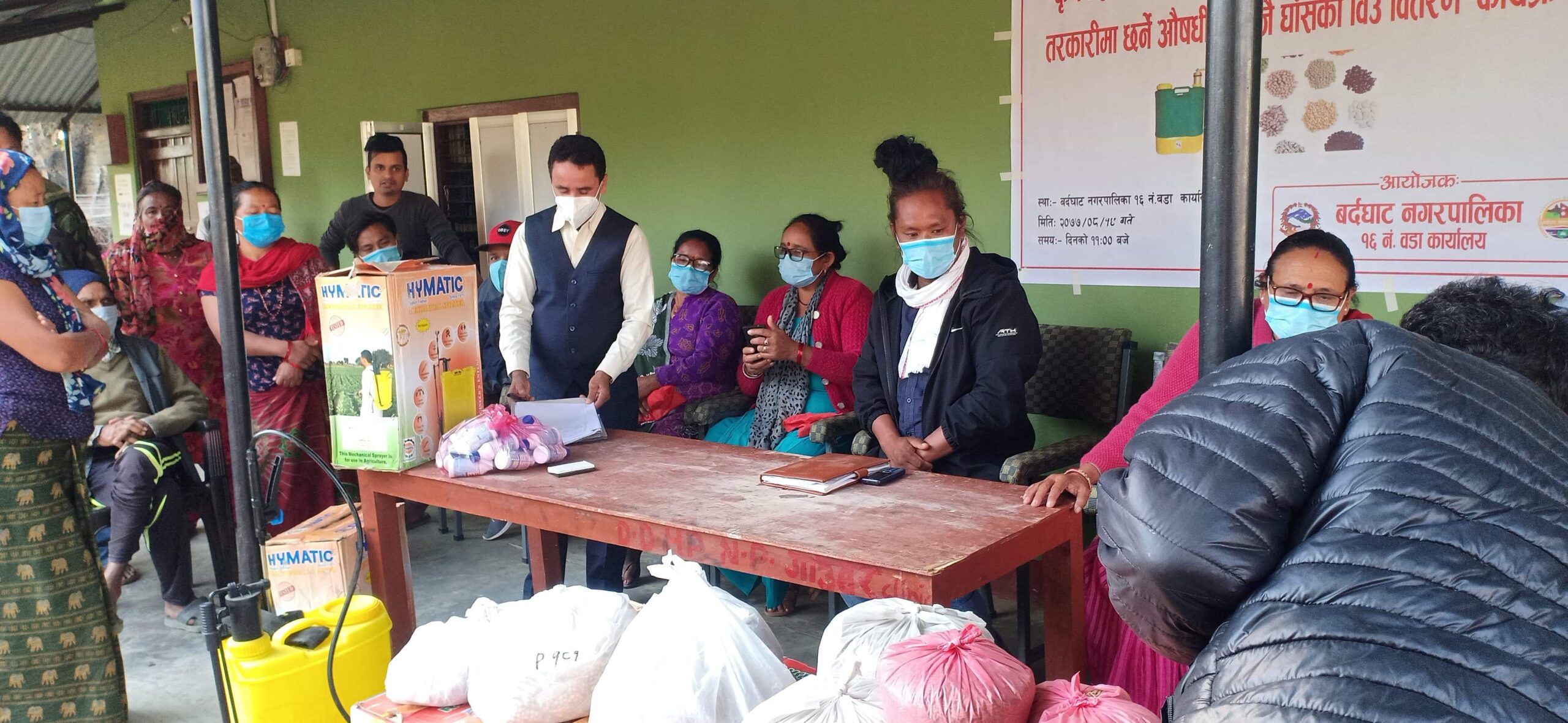 नवलपरासी /१४ मंसिर बर्दघाट नगरपालिका वडा नम्बर १६ ले कृषक प्रोत्साहनका लागि वडा भित्र रहेका किसानहरुलाई विभिन्न प्रजातिका बिउबिजन तथा स्प्रे ट्याङ्की बितरण गरेको छ। वडा अध्यक्ष सुकबहादुर गुरुङको अध्यक्षतामा आयोजित एक कार्यक्रमका बिच कृषकहरुलाई घास,तरकारीका बीउ तथा कृषि सामाग्री बितरण गरिएको थियो। कार्यक्रममा वडा भित्र रहेका १६४ कृषकहरुलाई मुला,मार्फा साग,केराउ,घिउ सिमि लगायतका तरकारीहरुका बीउ बितरण गरिएको हो।त्यसैगरि ३ ओटा बाख्रा पालन समूह लाई १५ केजिको दरले र अन्य किसान लाई प्रतीब्यक्ती २ केजिका दरले २ सय जनालाई जै घासको बीउ बितरण गरिएको थियो। वडाले तरकारिमा छिट्ने १०० थान किटनासक औषधि र ६ ओटा टोल सुधार समितिहरुलाई १२ वटा स्प्रे ट्याङ्की हस्तान्तरण गरिएको वडाअध्यक्ष सुकबहादुर गुरुङले जानकारी दिए। वडा ले किसानहरुलाई कृषिमा आकर्षित गराउनका निम्ति कृषि क्षेत्रमा उत्पादनको वृद्धि गरि किसानहरुलाई निर्वाहमुखी मात्रै नभएर ब्यवसायमुखी बनाउनका निम्ति किसान लक्षित विभिन्न कार्यक्रम हरु सन्चालन गर्दै आईरहेको अध्यक्ष सुकबहादुर गुरुङले बताए। अझै पनि कृषि पेसा अगालेर दुख गरिरहेका वास्तविक किसानहरुले समयमै बीउ बिजन,मल,किटनासक औसधिहरु सहज रुपमा पाउन नसकेकाले प्रत्येक स्थानिय तहले वडा मार्फत प्रत्यक्ष रुपमा किसान लाभान्वित हुने खालका कार्यक्रमहरु ल्याउनु पर्ने अध्यक्ष गुरुङले बताए। वडाले बिउबिजन तथा कृषि सामाग्री उपलब्ध गराएपछी कृषकहरु समेत हर्षित बनेका छन। कार्यक्रममा वडा सदस्य, विभिन्न टोल सुधार समितिका अध्यक्षहरु,स्थानिय क्लबका प्रतिनिधिहरुको उपस्थिति रहेको थियो।भने कार्यक्रमको सन्चालन सोही वडाका सचिव यम प्रसाद न्यौपानेले सन्चालन गरेका थिए। राष्ट्रिय दैनिक राष्ट्रिय दैनिक एक लोकप्रिय नेपाली समाचार पोर्टल हो। हामी सत्य तथ्य निश्पक्ष र सन्तुलित समाचार सम्प्रेषण गर्ने तर्फ उद्दत छौँ । हाम्रा टोल,समाज, शहर वा आम जनताका चुलो चौको देखि सदन सम्म अथवा समाजका उदाहरणीय ब्यक्ति, रास्ट्रका पहरेदार हरेक बिषय हाम्रा समाचारका श्रोत हुन् । आवाज बिहिनहरुको आवाजमा साथ अनि सरकारको बेथितिमा हाम्रो निगरानी हुनेछ । हामी राजनितीको रंग भर्दैनौं तर राजनितीको चेतना अवश्य भर्ने छौं ।