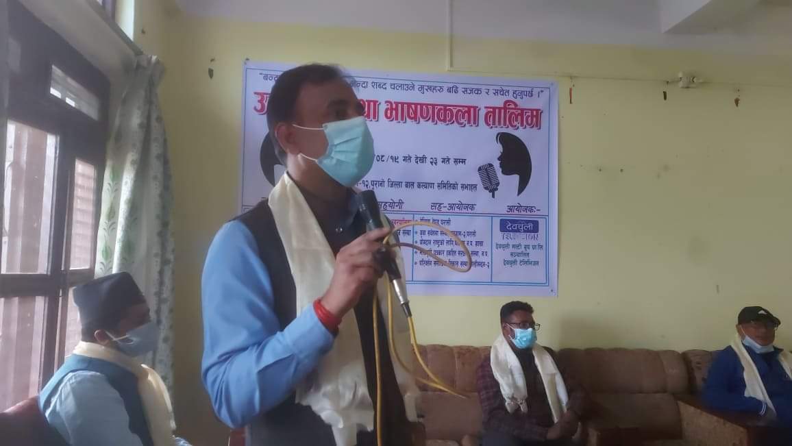 रन्जीत शर्मा / नवलपरासी / २० मंसिर । पश्चिम् नवलपरासीको रामग्राम नगरपालिका वडा न-१२ पुरानो जिल्ला बाल कल्याणको सभाहल, परासीमा ५ दिने उद्घोषण तथा भाषणकला तालिम औपचारिक रुपमा उदघाटन भइ सुरु भएको छ् । हिजो देखी सन्चालनमा आएको तालिम आज एक कार्यक्रम बीच उद्दघाटन गरिएको छ । देवचुली टि०भि० का प्रतिनिधि ग्यानेश्वर सहानीको अध्यक्ष्ाता तथा रामग्राम नगरपालिकाका प्रमुख नरेन्द्र कुमार गुप्ताको प्रमुख अतिथिक्ता , परासी क्याम्पसका प्रमुख सुमन गोपाल आचार्यको विशिस्ट अतिथिक्ता , युवा तथा सामाजिक अभियन्ता सुखाडी प्रसाद चौधरीको विशेष अतिथिक्ता तथा मैत्री समाज नेपालका अध्यक्ष राकेश गुप्ता , रामग्राम नगरपालिकाका कार्यपालिका सदस्य रोशन शाह, बाल समुह जिल्ला सवन्री समिती नवलपरासीका भु०पुर्ब ० कोषाध्यक्ष डब्लु यादवको लगायतको अतिथिक्ता तथा सम्पूर्ण सहभागीको उपस्थितिमा उद्दघाटन कार्यक्रम सम्पन्न गरिएको छ । देवचुली टेलिभिजनको आयोजना तथा हेल्पिङ हेन्ड परासि ,युवा सचेतना संस्था ,रामग्राम-२ परासी ,योगदान रास्ट्रको लागी पश्चिम नवलपरासी शाखा ,भोजपुरी पत्रकार हकहित संरक्षण संस्था नवलपरासी,परिवर्तन सामाजिक बिकास संस्था, पाल्हिनन्दन-२ को सह आयोजना तथा सनराइज इङलिस स्कुल पाल्हिनन्दन-२ महेशपुर अमानिगन्ज , उज्यालो भबिस्य संस्था ,उत्तम सहयोगी सामाजिक बिकास संस्था , मैत्री समाज नेपाल ,परासी एजुकेसन सेन्टर रामग्राम-४ जितपुर ,रामग्राम जेसिसको सहकार्य तथा राष्ट्रिय दैनिक ,गण्डकी आज , उदयमान रास्टिय अनलाइन पत्रीकाको मिडिया सहकार्य एवम् नरेन्द्र गुप्ता प्रमुख रामग्राम नगरपालिका , धिरज त्रिपाठी केन्द्रिय अध्यक्ष , सुखाडी प्रसाद चौधरी युवा तथा समाजिक अभियन्ता , रबिन्द्र सहानी नेता नेपाली काङ्ग्रेस तथा समाजसेवी सम्साद अन्सारी लगायत सहयोग दाताहरु सहयोगमा कार्यक्रम सन्चालन भइ रहेको छ । तालिमको पहिलो दिन एम ०एस० डि०एस० एवम् हेल्पिङ हेन्ड परासीका प्रमुख सन्जय शर्मा द्वारा नेतृत्व बिकास तथा उद्घोषण सम्बन्धित सामान्य कक्षा संचालन गरिएको थियो भने तालिमको दोस्रो दिन उदयमान रास्ट्र अनलाइन पत्रीकाका संयोजक तथा कार्यकारी प्रमुख इज्जत कंडेलले उद्घोषक र उद्घोषणको बारेमा प्रष्ट पार्दै उहाँमा हुनु पर्ने गुण , शैली , परिरहन, तथा प्रयोगात्मक गरि समापन गरिएको थियो । तालीम १९ गतेबाट सुरु भइ २३ गते सम्म सन्चालन हुनेछ । प्रत्येक दिन रास्ट्र स्तरका प्रशिक्षक बाट तालिम संचालन हुने आयोजकले जनाएको छ । राष्ट्रिय दैनिक राष्ट्रिय दैनिक एक लोकप्रिय नेपाली समाचार पोर्टल हो। हामी सत्य तथ्य निश्पक्ष र सन्तुलित समाचार सम्प्रेषण गर्ने तर्फ उद्दत छौँ । हाम्रा टोल,समाज, शहर वा आम जनताका चुलो चौ