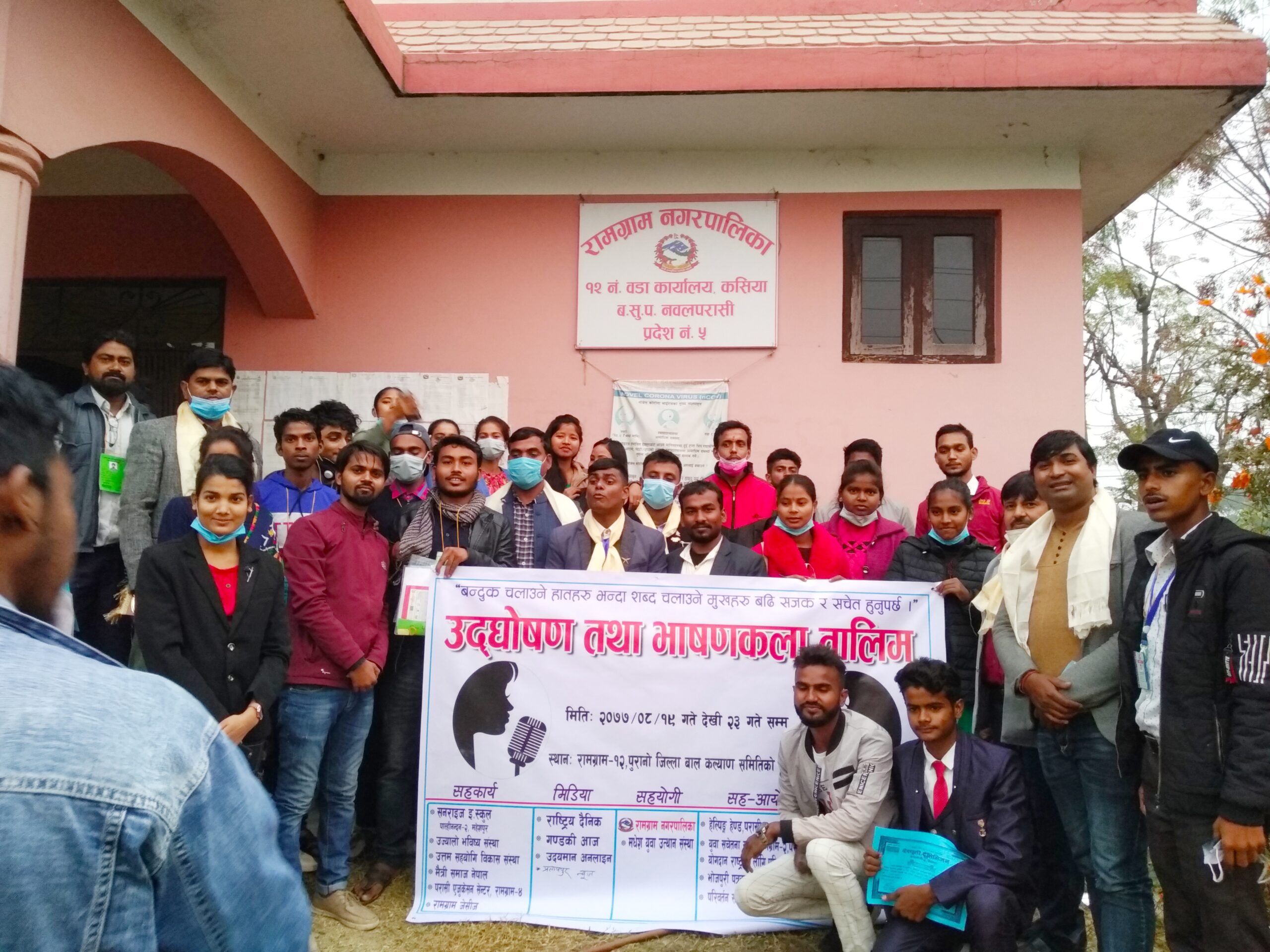 उमेश बि.क / नवलपरासी ,२३ मंसिर पश्चिम नवलपरासीकाे रामग्राम नगरपालिका वडा न. १२ मा ५ दिने उद्घोषण तथा भाषणकला तालिमको सम्पन्न भएको छ। देवचुली टेलिभिजनको आयोजना तथा विभिन्न संस्थाकाे समन्वयमा कार्यक्रम संयाेजक ज्ञानेश्वर सहानी तथा सरावल ५ वडा अध्यक्ष दिनेश सहानिकाे प्रमुख अातिथ्यतामा तालिम सम्पन्न भएको हो । तालिमकाे समापन कार्यक्रममा बाेल्दै सरावल ५ वडा अध्यक्ष सहानिले तालिममा सिकेका कुरा जीवन व्यवहारमा लागु गर्न अाग्रह गर्नुभयो । तालिममा रामग्राम नगरपालिका ,सुनवल नगरपालिका ,सरावल गाउँपालिका,पाल्हिनन्दन गाउँपालिका अन्तर्गतका ३५ जनाकाे सहभागीता रहेको थियाे। राष्ट्रिय दैनिक राष्ट्रिय दैनिक एक लोकप्रिय नेपाली समाचार पोर्टल हो। हामी सत्य तथ्य निश्पक्ष र सन्तुलित समाचार सम्प्रेषण गर्ने तर्फ उद्दत छौँ । हाम्रा टोल,समाज, शहर वा आम जनताका चुलो चौको देखि सदन सम्म अथवा समाजका उदाहरणीय ब्यक्ति, रास्ट्रका पहरेदार हरेक बिषय हाम्रा समाचारका श्रोत हुन् । आवाज बिहिनहरुको आवाजमा साथ अनि सरकारको बेथितिमा हाम्रो निगरानी हुनेछ । हामी राजनितीको रंग भर्दैनौं तर राजनितीको चेतना अवश्य भर्ने छौं ।