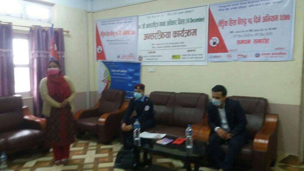 देशबन्धु यादव पश्चिम नवलपरासीको रामग्राममा लैंगिक हिंसा विरुद्ध १६ दिने अभियान कार्यक्रम सम्पन्न गरिएको छ। रामग्राम नगरपालिकाकाे उपमेयर रम्भा कुवंरकाे अध्यक्षतामा १६ दिने महिला हिंसा विरुद्धको अभियान विभिन्न कार्यक्रमका साथ समापन भएको छ। सम्पूर्ण नागरिक समाज, अधिकारकर्मी सबै मिलेर महिला हिंसा अन्त गर्नु पर्ने उपमेयर रम्भा कुवंरले भन्नु भयो। कार्यक्रमकाे समापन कार्यक्रममा स्वागत मंतव्य कार्यपालपालिका सदस्य सुनिता श्रेष्ठ , प्रशासकिय अधिकृत रामलाल भूषाल , अपाड़्ग संघ का केन्द्रीय सदस्य रामरतन हरिजन, प्रहरी सहाक निरीक्षक सुरेन्द्र खडका , सुआहारा का कार्यक्रम अधिकृत तीर्थराज ढुड़ाना, महिला मानव अधिकार रक्षक संजाल नवलपरासीका अध्यक्ष समझना चौधरी ,रामग्राम नगरपालिकाका पंजिकरण शाखा रिजवान अंसारी लगायत विशिष्ट महानुभावको गरिमामय उपस्थिति रहेको थियो । रामग्राम नगरपालिका महिला विकास शाखा का प्रमुख तारा अर्यालको संचालनमा सम्पन्न भयो। राष्ट्रिय दैनिक राष्ट्रिय दैनिक एक लोकप्रिय नेपाली समाचार पोर्टल हो। हामी सत्य तथ्य निश्पक्ष र सन्तुलित समाचार सम्प्रेषण गर्ने तर्फ उद्दत छौँ । हाम्रा टोल,समाज, शहर वा आम जनताका चुलो चौको देखि सदन सम्म अथवा समाजका उदाहरणीय ब्यक्ति, रास्ट्रका पहरेदार हरेक बिषय हाम्रा समाचारका श्रोत हुन् । आवाज बिहिनहरुको आवाजमा साथ अनि सरकारको बेथितिमा हाम्रो निगरानी हुनेछ । हामी राजनितीको रंग भर्दैनौं तर राजनितीको चेतना अवश्य भर्ने छौं ।