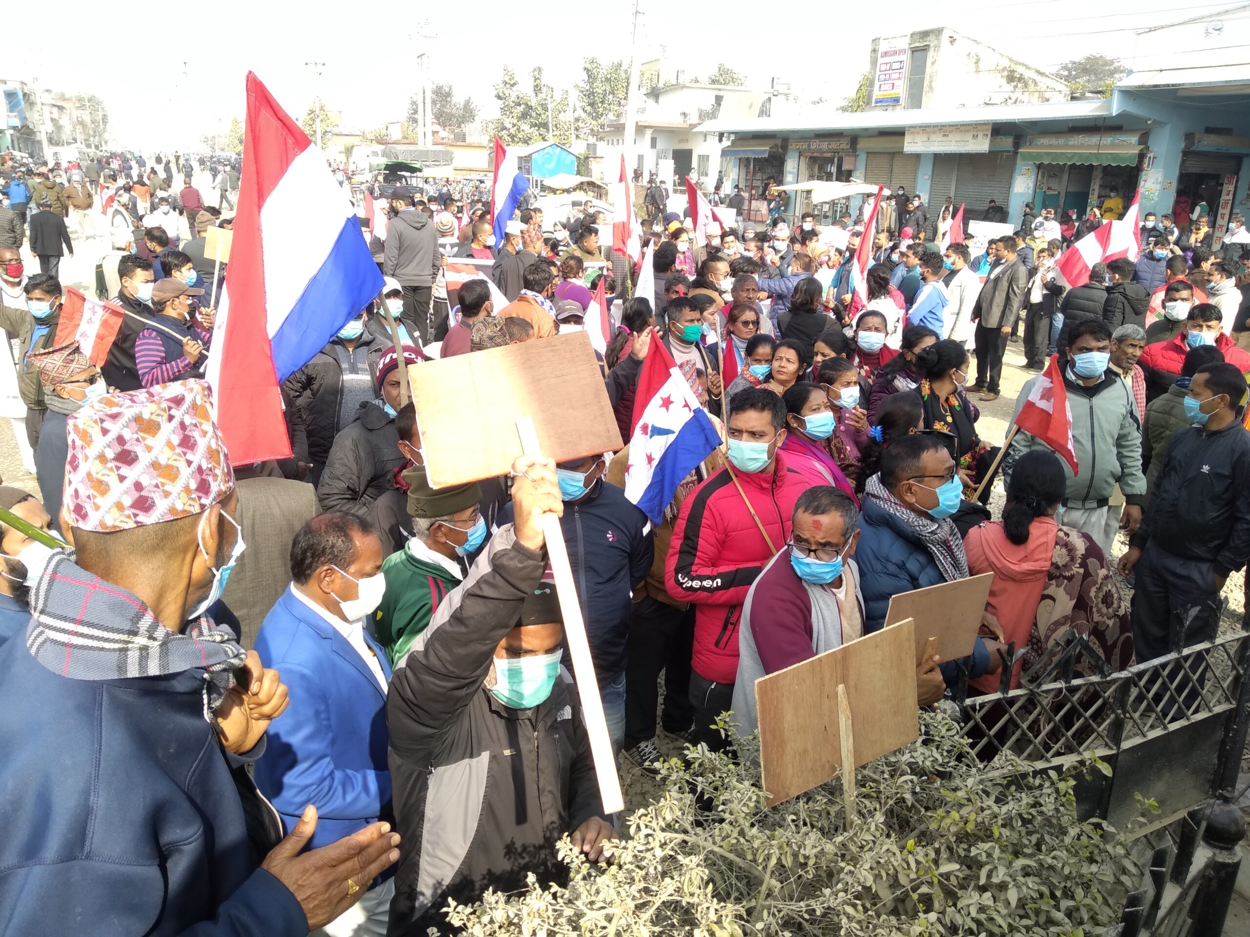 उमेश बि.क /नवलपरासी ,२९ मंसिर नेपाली कांग्रेस जिल्ला कार्यसमिति पश्चिम नवलपरासीले नेकपा सरकार विरुद्ध र्याली सहित बृहत विरोध प्रदर्शन गरेको छ । सरकारको अधिनायकवादी र दमनकारी ब्यवहारविरुद्ध केन्द्रिय कार्यक्रम अनुसार नवलपरासी लगायत देशभर कांग्रेसले प्रर्दशन गरिएको हो । पार्टी कार्यालयबाट बृहत प्रर्दशनसहित वर्तमान सरकारको कार्यशैलीको भण्डाफोर भएको नेपाली कांग्रेस नवलपरासीकाे सभापति बिष्णु पाैडेलले जानकारी दिनुभयो । पार्टीका जिल्ला सभापति विष्णु पौडेकोको संयोजकत्वमा निक्लेको वृहद विरोध र्याली मालटोल, जिल्ला अदालत, बुद्धचोक, जिल्ला प्रशासन कार्यालय हुदै बुद्धचोक स्थित कोणसभामा परिणत भएको थियो । विरोध प्रदर्शनमा जिल्लादेखि केन्द्रका नेताहरुको सहभागिता रहेको थियो भने पार्टीका विभिन्न भातृत्व संघ संगठन र पार्टीका अगुवा कार्यकर्ताहरुको सहभागिता रहेको थियो । सरकार विरुद्ध विभिन्न नाराबाजी गर्दै निक्लेको विरोध र्यालीमा करिब २ हजार कार्यकर्ताहरुको सहभागिता रहेको थियो । विरोध प्रदर्शनमा नेकपा सरकार भ्रष्ट्राचारी सकार, कूशासन, अधिनायकवादी, महिला हिंसा, बलात्कार, कर वृद्धि र भ्रष्टाचारमा लिप्त भएको असफल सरकारको नारा सहित तनहुँको घटना प्रति घोर निन्दा समेत व्यक्त गर्दै नाराबाजी भएको थियो । पार्टीका सभापति विष्णु पौडेलको अध्यक्षतामा भएको कोणसभामा नेपाली कांग्रेसका केन्द्रिंय सदस्य एवं प्रतिनिधि सभा सदस्य देवेन्द्रराज कण्डेल, संविधान सभा सदस्यद्धय नेता देवकरण जयसवाल, विक्रम खनाल, प्रदेश सभा सदस्य नेता बैजनाथ जयसवाल, पार्टीका जिल्ला उप सभापति अर्जुन कुमार पोख्रेल, नेका जिल्ला सचिव विक्रम यादव, नेका सहसचिव तथा जिल्ला समन्वय समिति प्रमुख शिवशंकर राय, पार्टीका क्षेत्रिय सभापति एवं रामग्राम नगरपालिका नगर प्रमुख नरेन्द्र कुमार गुप्ता, पार्टीका महासमिति सदस्य सुनवल नगरपालिका नगर प्रमुख भिम बहादुर थापाक्षेत्री, पार्टीका नेता सरावल गाउँपालिका अध्यक्ष राधेश्याम चौधरी, महिला संघका जिल्ला सभापति कमला तिवारी लगायतले नेकपा सरकार भ्रष्टचार र अनियमिततामा लिप्त भएको आरोप लगाएका थिए । कम्युनिष्ट सरकारले देशका जनतालाई दुख दिने र कार्यकर्ता पाल्ने काम गरिरहेको आरोप लगाए । राष्ट्रिय दैनिक राष्ट्रिय दैनिक एक लोकप्रिय नेपाली समाचार पोर्टल हो। हामी सत्य तथ्य निश्पक्ष र सन्तुलित समाचार सम्प्रेषण गर्ने तर्फ उद्दत छौँ । हाम्रा टोल,समाज, शहर वा आम जनताका चुलो चौको देखि सदन सम्म अथवा समाजका उदाहरणीय ब्यक्ति, रास्ट्रका पहरेदार हरेक बिषय हाम्रा समाचारका श्रोत हुन् । आवाज बिहिनहरुको आवाजमा साथ अनि सरकारको बेथितिमा हाम्रो निगरानी हुनेछ । हा