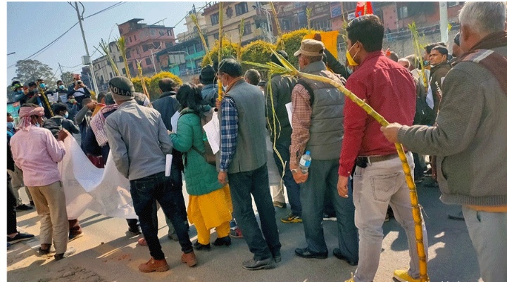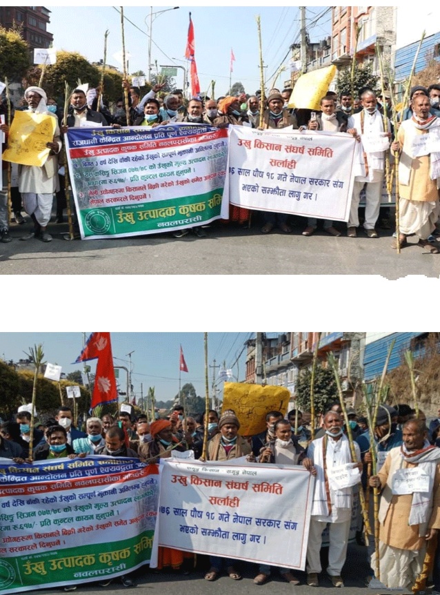१ पुस, काठमाडौं । चार दिनदेखि काठमाडौंको माइतीघरमा आन्दोलनरत उखु किसानले बुधबार उखुको ढाँकसहित प्रदर्शन गरेका छन् । पछिल्ला दिनका आन्दोलनमा किसानको संख्या पनि बढिरहेको छ । यसअघि ब्यानर र प्लेकार्डसहित प्रदर्शन र धर्ना दिएका किसानले बुधबारदेखि उखु बोकेरै प्रदर्शन गरेका छन् । राष्ट्रिय दैनिक राष्ट्रिय दैनिक एक लोकप्रिय नेपाली समाचार पोर्टल हो। हामी सत्य तथ्य निश्पक्ष र सन्तुलित समाचार सम्प्रेषण गर्ने तर्फ उद्दत छौँ । हाम्रा टोल,समाज, शहर वा आम जनताका चुलो चौको देखि सदन सम्म अथवा समाजका उदाहरणीय ब्यक्ति, रास्ट्रका पहरेदार हरेक बिषय हाम्रा समाचारका श्रोत हुन् । आवाज बिहिनहरुको आवाजमा साथ अनि सरकारको बेथितिमा हाम्रो निगरानी हुनेछ । हामी राजनितीको रंग भर्दैनौं तर राजनितीको चेतना अवश्य भर्ने छौं ।