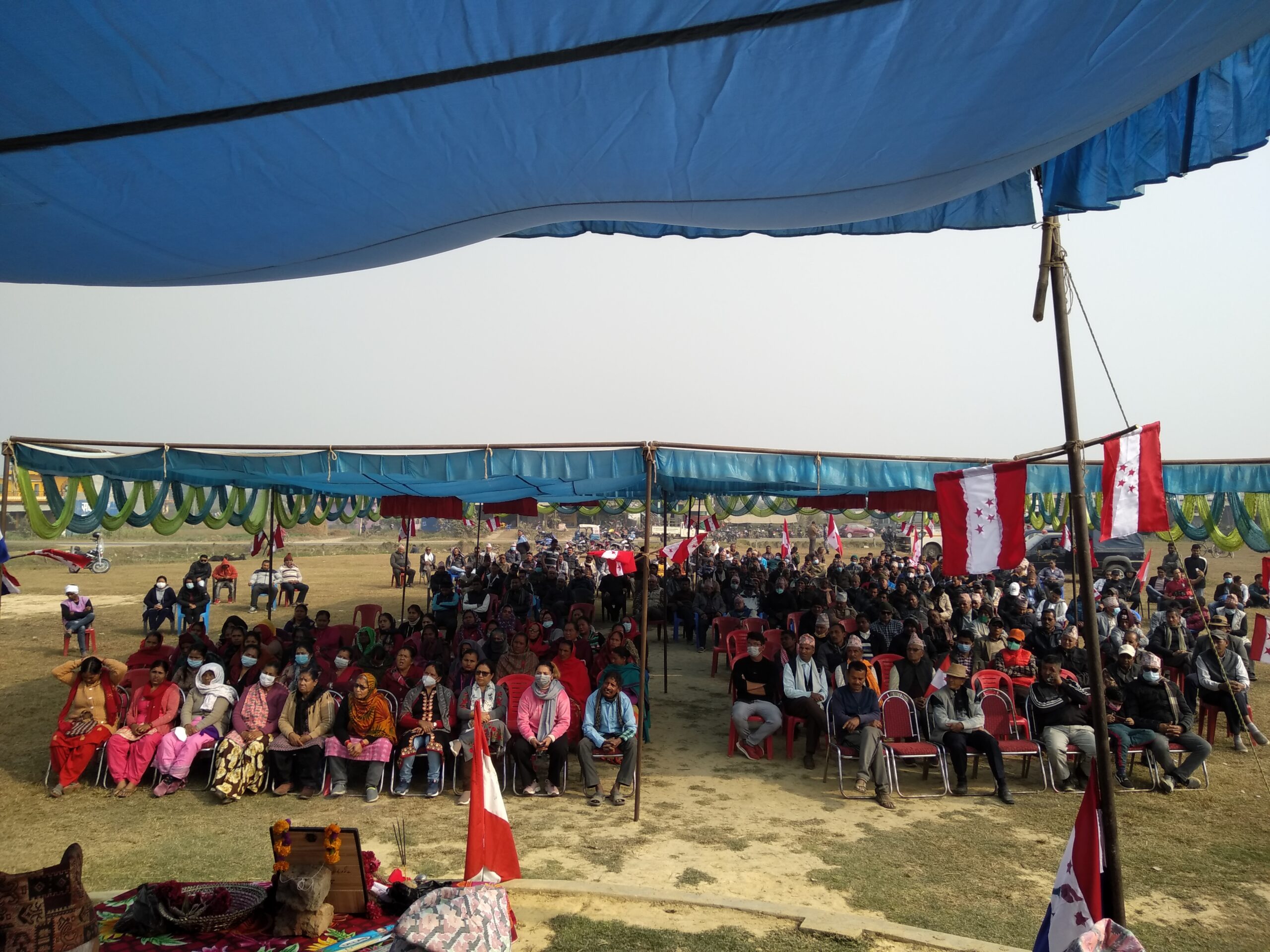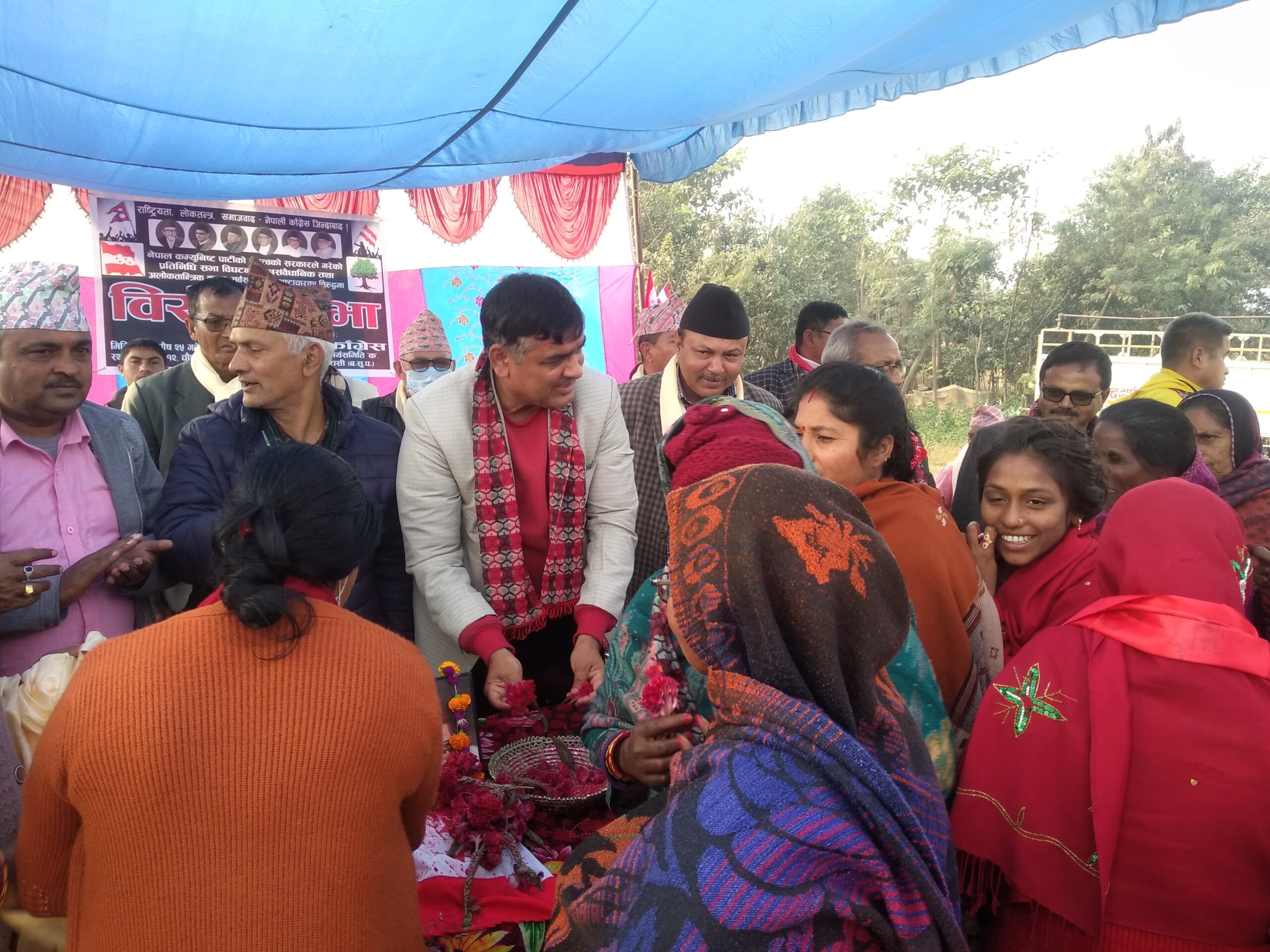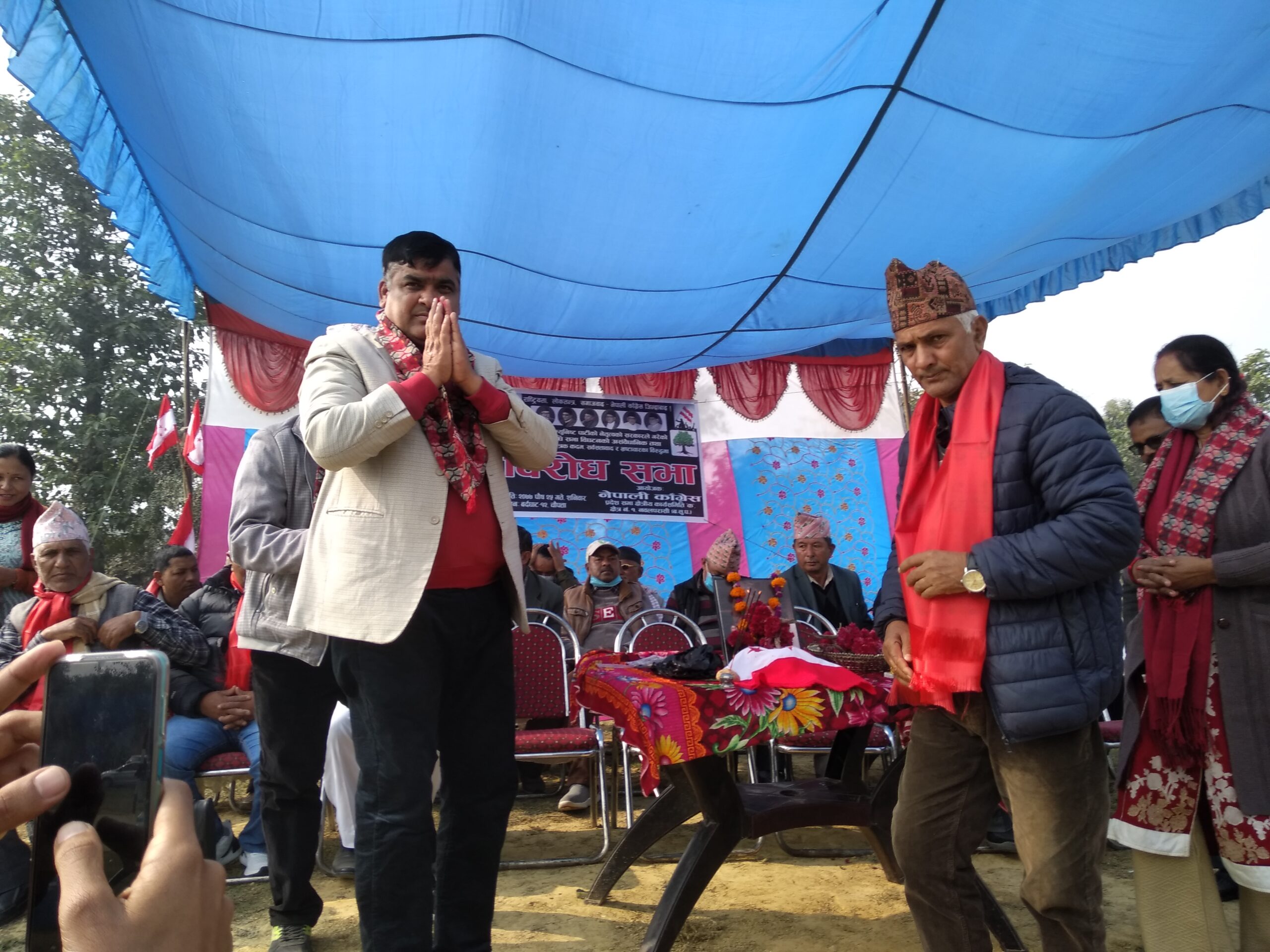 उमेश बि.क / नवलपरासी ,२५ पुस नेपाली काँग्रेसले शनिबार देशभर अाेलि सरकारविरुद्ध प्रदर्शन गरेको छ । देशव्यापी विरोध प्रदर्शन गरेको काँग्रेसले बेजोडको शक्ति प्रर्दशन गरेको दावी गरेको छ । सरकार भ्रष्टाचार, कुशासन र अधिनायकवादतर्फ उन्मुख भएको भन्दै काँग्रेसले देशव्यापी विरोध प्रदर्शन आयोजना गरेको हो । नेपाली कांग्रेस पार्टीले सञ्चालन गरेको देशब्यापी विरोध प्रदर्शन पश्चिम नवलपरासीमा पनि सम्पन्न गरिएको छ । नेपाल कम्युनिस्ट पार्टीको नेतृत्व सरकारले गरेको प्रतिनिधिसभा बिगठनकाे असम्बैधानिक तथा अलाेकतान्त्रिक कदम सर्वसत्तावाद र भष्टचारका विरुद्धमा नेपाली काङ्ग्रेस प्रदेश क्षेत्रीय कार्यसमिति क १ काे सभापति बेद प्रसाद शर्माकाे अध्यक्षता तथा संविधानसभा सदस्य विक्रम खनालकाे प्रमुख अातिथ्यतामा विरोध सभा कार्यक्रम सम्पन्न भएको हाे। विरोध सभालाई सम्बाेधन गर्दै संविधानसभा सदस्य विक्रम खनालले कम्युनिस्ट सरकार बलत्कार ,छाडातन्त्र र अशान्ति बाहेक कुनै काम नगरेको भन्दै यस्ता भष्टचारीहरुलाई सत्तबाट हटाउन जरुरी रहेको बताउनु भएको हाे। नेपाल दु:खमा पर्दा काेराेनाकाे बिषम परिस्थितिमा पनि लुटतन्त्र माैलाएकाे र रेल ,पानी जहाज ,घरघरमा ग्यास ल्याउने कुरा नेकपाकाे सडयन्त्र मात्र रहेको कुरा चर्चा गर्नुभएको हाे।अाफ्नाे कार्यकालमा अाफुले ठुलो विकास निर्माण कार्य गरेको बताउदै अाेलि सरकार र नेकपा पार्टी भष्टचारमा लिप्त भएकाे बताउदै नेपाली काङ्ग्रेस बाहेक अन्य कुनै बिकल्प नरहेकाे कुरामा जाेड दिनुभएको हाे। साथै नेपाल कम्युनिस्ट पार्टीको नेतृत्व सरकारले गरेको प्रतिनिधिसभा बिगठनकाे असम्बैधानिक कामप्रति घाेर अापत्ति जनाउनु भएको हाे। विराेध प्रदर्शन कार्यक्रममा निवर्तमान जिल्ला उपसभापति दिप प्रसाद लाेहनि,जिल्ला सदस्य विश्वप्रेम पाठक ,नेता तपचन्द्र विश्वकर्मा ,महासमिति सदस्य अनिल गाैड ,नेपाल महिला संघ जिल्ला सभापति कमला पराजुली ,काङ्ग्रेस नेता मान बहादुर थापा,तरुणदल जिल्ला सभापति सुक बहादुर गुरुङ,बर्दघाट नगर सभापति सम्भुलाल श्रेष्ठ ,नेपाली काङ्ग्रेस सरावल गाउँपालिका सभापति बिनाेद पाण्डेय , नेपाल विद्यार्थी संघका नेता ददिराम पाैडेल,नेपाली काङ्ग्रेस प्रदेश क्षेत्रीय कार्यसमिति क १ काे सचिव दिपक बराल लगाएतले नेपाली काङ्ग्रेसको अगुवाइमा धेरै विकास निर्माणका कार्य भएको र हाल केपि अाेलि सरकारले देसमा ज्यादती गरेको छ । नेपालको संविधान जाेखिममा रहेको हुदा प्रत्येक जनता केपिकाे कुकार्य प्रती अवाज उठाउन जरुरी छ ।बाम पार्टी निजि स्वार्थमा देशलाई लुटिरहेका छन। केपि अाेलि र बिद्या भण्डारीले देशका जनतालाई दुखमा धकेलिएको कार्यप्रती अब नेपाल