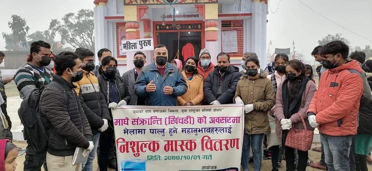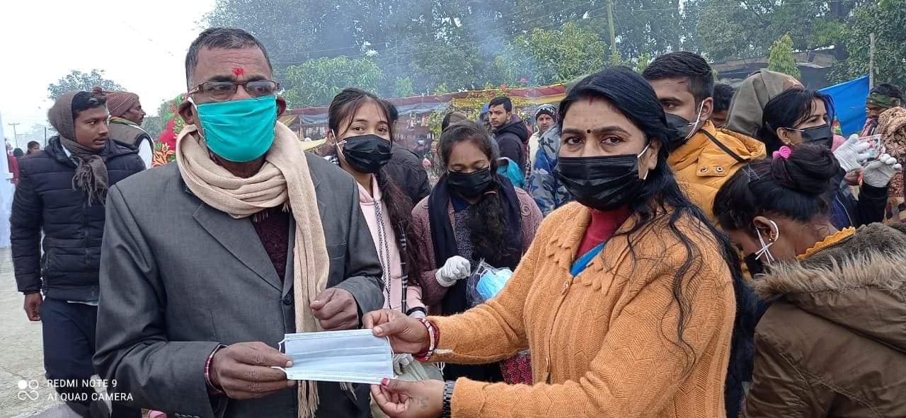 रन्जीत शर्मा / नवलपरासी/ १ माघ । पश्चिम् नवलपरासीको पाल्हिनन्दन गाउपालिका वडा न० २ गोपालपुरमा माघेसन्क्राती मेलालाई थप सुरक्षाका साथ मनाउनको लागी १००० थान मास्क निशुल्क रुपमा वितरण गरिएको छ । युवा सचेतना संस्थाका अध्यक्ष इमामुल अलिको अध्यक्षता तथा पूर्व गृहराज्यमन्त्री एवं प्रतिनिधि सभा सदस्य देवेन्द्रराज कण्डेलको प्रमुख अतिथ्यता तथा लुम्बिनी प्रदेश सभा सदस्य वैजनाथ जैसवालको विशिष्ट अतिथ्यता,एवम् पाल्हिनंदन गाउपालिका उपाध्यक्ष पाबित्रा कोहारको विशेष अतिथ्यता तथा देवेन्द्रराज कंडेलका स्वकीय सचिव कमल किशोर राय माझी , समाजसेवि राजनरेस दास पटनवार, अनिल उपाध्याय, उपेन्द्र गुप्ता ,पत्रकार जितेन्द्र गुप्ता समाजसेवि धर्मेन्द्र मोैर्य , हिरा हरिजन तथा संस्थाका पदाधिकारीहरुको सहभागीता मा सम्पन्न भएको छ । कार्यक्रमलाई सम्बोधन गर्दै प्रमुख अतिथि कंडेलले ” मेलालाई स्वास्थ्य सुरक्षाको मापदण्ड पुरा गरि ,आफू सुरक्षित भइ मनाउन सम्पूर्ण जनसमुदायमा अनुरोध गरेका थिए । राष्ट्रिय दैनिक राष्ट्रिय दैनिक एक लोकप्रिय नेपाली समाचार पोर्टल हो। हामी सत्य तथ्य निश्पक्ष र सन्तुलित समाचार सम्प्रेषण गर्ने तर्फ उद्दत छौँ । हाम्रा टोल,समाज, शहर वा आम जनताका चुलो चौको देखि सदन सम्म अथवा समाजका उदाहरणीय ब्यक्ति, रास्ट्रका पहरेदार हरेक बिषय हाम्रा समाचारका श्रोत हुन् । आवाज बिहिनहरुको आवाजमा साथ अनि सरकारको बेथितिमा हाम्रो निगरानी हुनेछ । हामी राजनितीको रंग भर्दैनौं तर राजनितीको चेतना अवश्य भर्ने छौं ।