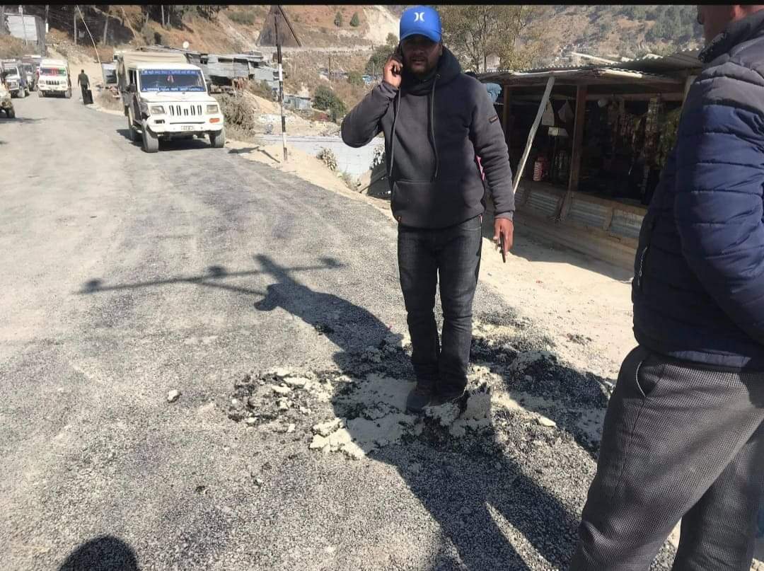 उत्तम कुमार थापा / ८ माघ बझाङ बागथला देखि भोपुरको जयपृथ्वी बहादुर सिंह सडकमा कालोपत्रे गर्ने कार्यमा कमसल काम भएको भन्दै स्थानियले चासो राखेका छन् । अाज नेकपाका युवानेता र अनेरास्ववियू का नेताहरुले आज सो सडक अवलोकन गरेका थिए । सडक कार्यालय बैतडिले जलजला निर्माण सेवा काठमांडौलाई सो सडक कालोपत्रे गर्नका लागि काम गराईरहेको छ । हातले उप्काउन मिल्नेगरि कालोपत्रे गर्न लागेको खबर सुनेर अवलोकन गर्न जादा कमसल काम गरेको फेला पारेको नेकपाका युवा नेता नरेन्द्र खडकाले बताउनुभयो । राज्यको रकमलाई यसरि दुरुपयोग नगर्न निर्माण कम्पनिका प्रतिनिधिलाई अनेरास्ववियू का नेता पुष्पलाल रोकायाले सुझाव दिएका छन् । आज एकाएक सडककाे कालाेपत्रे हेर्न पुगेका युवाहरुले सुझाव सल्लाह दिनुका साथै गुणस्तर हिन सडक निर्माण गर्नु भन्दा नगर्नु हुन अनुराेध गरेका हुन । अहिले सम्म काम टालाटुली बटुली जस्तै भएको पाईन्छ । सडककाे स्टमेट भन्दा कम खर्च लाग्ने गरेर गुणस्तर हिन सडक निर्माण कार्य अगाडि बढिरहेको बेला जिल्लामा रहेका कसैले पनि ध्यानाकर्षण हुन सकेको छैन । सडककाे स्टमेट हटप्रेमिक्स २० mm चाैडाई ४ मिटर मात्र व्यस हाल्ने ,गिट्टी ६०% ४०% माटाे ,रहेता पनि सडक अहिले १० mm देखि १५ mm काे निर्माण भएको स्पस्ट देख्नपाईन्छन । सडकमा सडक पिच गर्दा रिसाेलिङ पिच गर्नु पर्ने ठाउमा गिट्टी नराखेर मात्रा अनुसार सामाग्री प्रयाेग नगरि सडक बनिरहेको छ । सडक पिच गर्दा सामाग्री त गुणस्तर हिन प्रयाेग गरिएको छ भने छेउछाउमा भएको सामाग्री नहटाई सडक लाई वाङ्गाे पारेर पिच गर्ने गरेको पाईन्छ । गिट्टी नहालेर खाल्दी कालाे पत्रे जालाे हालेर काम गर्ने गरेको पाईन्छ । काम गर्दा गल्ति भएको स्विकारे निर्माण कम्पनिका प्रतिनिधि हरिप्रशाद खनालले । ओटासिल सडक उप्कीसकेकोले सो मर्मतका लागी करिब ६ करोडमा सो कम्पनि सगँ सम्झौता भएको सडक कार्यालय बैतडिका प्राबिधिक ईन्दराज जोशिले जानकारि दिएका छन । साथै जोशिले भन्नुभयो ,“सो सडकमा कालो पत्रे गर्ने क्रममा मापदण्ड बिपरित गरेको देखिएकोले नापजाचँ नगरिने र सम्झौता बमोजिमको रकम समेत भुक्तानि नदिने बताउनु भएको छ ।” तत्काल कमसल काम रोकेर मापदण्ड बमोजिम काम गराउनमा सरोकारवालाको ध्यान जान जरुरि देखिएको छ । सदरमुकाम को आसपासको मुख्य सडकमा कमसल कार्य भईरहेकोले सो कार्य नसुधारे काम ठप्पपार्ने जयपृथ्वी नगरपालिका ७ का युवा नेता सत्यराज जोशिले जानकारि दिएका छन् । राष्ट्रिय दैनिक राष्ट्रिय दैनिक एक लोकप्रिय नेपाली समाचार पोर्टल हो। हामी सत्य तथ्य निश्पक्ष र सन्तुलित समाचार सम्प्रेषण गर्ने तर्फ उद्दत छौँ । हाम्रा टोल,समाज, शहर वा आम जनताका चुलो चौको देखि सदन सम्म अथवा समाजका उदा