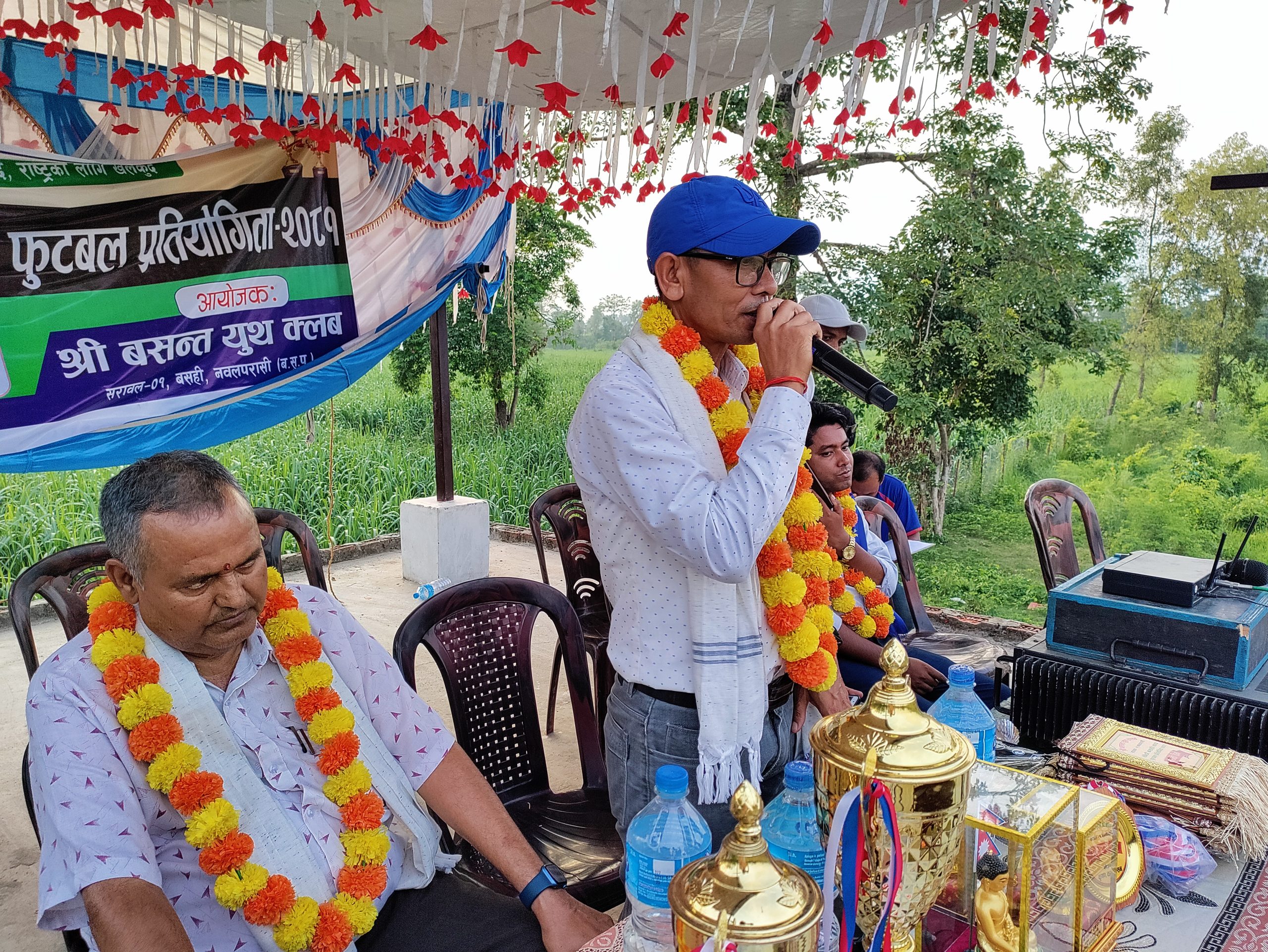 उमेश बि.क / नवलपरासी ,१२ असार पश्चिम नवलपरासीको सरावल गाउँपालिका वडा नम्बर १ बसहीमा आयोजना गरिएको छैठौं बसही कप फुटबल प्रतियोगिताकाे उपाधी भगडाले उचालेको छ । सरावल गाउँपालिकाकाे सहयोग तथा बसन्त युथ क्लब सरावल १ बसहीकाे आयाेजनामा सन्चालित छैठौं बसही कप फुटबल प्रतियोगितामा भगडाले बसहीलाई ४–१ ले हराउँदै भगडा उपाधि चुमेको हो । प्रतियोगिताका उपाधि विजेता भगडाले नगद १५ हजार मेडल ,कप ,प्रमाणपत्र प्राप्त गरेको छ । प्रतियोगिताको उपविजेतामा चित्त बुझाउन बाध्य भएको बसही ले नगद १० हजारको साथमा ट्रफी, मेडल र प्रमाणपत्र प्राप्त गरेको छ । विजयी टिम र खेलाडीलाई सरावल गाउँपालिका अध्यक्ष सुखाडी प्रसाद चाैधरी र वडा नम्बर १ वडा अध्यक्ष बिष्णु प्रसाद भट्टराईले नगद तथा पुरस्कार हस्तान्तरण गर्नुभएको थियो । असार ७ गतेबाट सञ्चालन भएको प्रतियोगितामा सरावल गाउँपालिका वडा नम्बर १ अन्तर्गतको सातवटा खेलाडी समुहले सहभागिता जनाएको आयोजक समितिका अध्यक्ष उत्तर कुमार चाैधरीले जानकारी दिनुभएको हाे। राष्ट्रिय दैनिक राष्ट्रिय दैनिक एक लोकप्रिय नेपाली समाचार पोर्टल हो। हामी सत्य तथ्य निश्पक्ष र सन्तुलित समाचार सम्प्रेषण गर्ने तर्फ उद्दत छौँ । हाम्रा टोल,समाज, शहर वा आम जनताका चुलो चौको देखि सदन सम्म अथवा समाजका उदाहरणीय ब्यक्ति, रास्ट्रका पहरेदार हरेक बिषय हाम्रा समाचारका श्रोत हुन् । आवाज बिहिनहरुको आवाजमा साथ अनि सरकारको बेथितिमा हाम्रो निगरानी हुनेछ । हामी राजनितीको रंग भर्दैनौं तर राजनितीको चेतना अवश्य भर्ने छौं ।