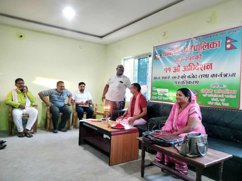 राजन कुमार बानिया / पर्सा, १२ असोज । पर्साको धोबीनी गाउँपालिकामा चार महिना ढिलो गरी ११ औं गाउँसभा सम्पन्न भएको छ। गाउँसभाले आर्थिक वर्ष २०८२/८३ का लागि ३३ करोड ८८ लाख ८८ हजार ९ सय ८१ रुपैयाँ बराबरको नीति, कार्यक्रम तथा अनुमानित बजेट सर्वसम्मत पारित गरेको हो। उपाध्यक्ष मंजु देवी पटेलको आदेशानुसार प्रमुख प्रशासकीय अधिकृत कृष्ण प्रसाद खतिवडाले बजेट प्रस्तुत गरेका थिए। गाउँसभाको उद्घाटन गाउँपालिका अध्यक्ष मदन प्रसाद चौहानले गरेका थिए। कार्यक्रमलाई सम्बोधन गर्दै अध्यक्ष चौहानले स्वास्थ्य, शिक्षा, कृषि, महिला–बालबालिका, पर्यटन तथा भौतिक पूर्वाधार विकासलाई आफ्नो पहिलो प्राथमिकता रहने बताए। उनले राजनीतिक समस्याका कारण गाउँसभा ढिलो भएको स्वीकार्दै अब विकास कार्य र जनताको दैनिक कामकाज छिटो छरितो हुने प्रतिबद्धता जनाए। साथै, विजयादशमीको अवसरमा सम्पूर्ण गाउँबासी र देशबासीलाई शुभकामना पनि दिए। प्रमुख प्रशासकीय अधिकृत खतिवडाले आफूले “इमानदारीपूर्वक काम गर्ने र धोबीनीलाई स्वच्छ, समृद्ध र नमुना गाउँपालिका” बनाउन योगदान दिने प्रतिवद्धता जनाए। गाउँसभामा उपाध्यक्ष पटेल, वडा अध्यक्षहरु, कार्यपालिका सदस्य, गाउँसभा सदस्य, विभिन्न शाखा प्रमुख, विद्यालय प्रतिनिधि, राजनीतिक दलका प्रतिनिधि, पत्रकार तथा सुरक्षाकर्मीहरुको सहभागिता रहेको थियो। राष्ट्रिय दैनिक राष्ट्रिय दैनिक एक लोकप्रिय नेपाली समाचार पोर्टल हो। हामी सत्य तथ्य निश्पक्ष र सन्तुलित समाचार सम्प्रेषण गर्ने तर्फ उद्दत छौँ । हाम्रा टोल,समाज, शहर वा आम जनताका चुलो चौको देखि सदन सम्म अथवा समाजका उदाहरणीय ब्यक्ति, रास्ट्रका पहरेदार हरेक बिषय हाम्रा समाचारका श्रोत हुन् । आवाज बिहिनहरुको आवाजमा साथ अनि सरकारको बेथितिमा हाम्रो निगरानी हुनेछ । हामी राजनितीको रंग भर्दैनौं तर राजनितीको चेतना अवश्य भर्ने छौं ।