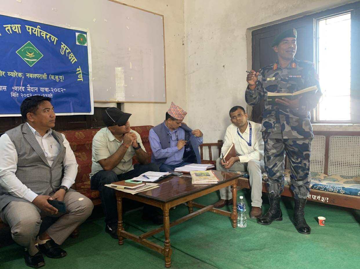 आरपि उपाध्याय / त्रिवेणी ,२१ कार्तिक पुर्वी नवलपरासी विनयी त्रिवेणी ६ को वडा कार्यालयको हलमा सिमा सुरक्षा सम्बन्धि अभिमुखिकरण गोष्ठी शुक्रबार सम्पन्न भएको छ। श्री नम्बर २ वन तथा पर्यावरण सुरक्षा गण हात्तीखोर ब्यारेकको आयोजनामा अभिमिखिकरण गोष्ठी सम्पन्न भएको हो। अभिमुखिकरण गोष्ठीमा आफ्नो धारणा राख्ने वक्ताहरुले त्रिवेणी र गण्डक ब्यारेज आसपासका इलाकाहरुबाट प्रत्यक्ष र अप्रत्यक्ष रुपमा हुने गरेको गैरकानुनी कार्य रोक्न सुरक्षा निकाय अझै गम्भीर हुनुपर्ने बताउदै त्रिवेणी क्षेत्रका विद्यालयहरुमा लागू औषध रोकथाम र नियन्त्रण सम्बन्धि जनचेतनामूलक तालिम सञ्चालन गर्नुपर्ने सुझाव दिइएको थियो। सिमा पार भारतबाट नेपाल आउने सवारीसाधनहरुलाई चेकजाँच कार्य फितलो भएको बताउदै उनीहरूले चेकजाँच कार्यलाई अझ कडाइका साथ गरिनु पर्ने र सिमा क्षेत्रका सरकारी जग्गाहरु अतिक्रमण हुँदै आएकोमा त्यस्ता गतिविधि रोक्न वडा न.६ र ७ को जनप्रतिनिधि र सुरक्षा निकायले त्यसको पनि निगरानी गर्नुपर्ने सुझाव दिएका थिए। गोष्ठीमा “प्रहरी युनिफर्म लगाएको नागरिक हो भने नागरिक बेगर युनिफर्मको प्रहरी” भएको हुँदा नागरिक र सुरक्षा निकायबीच गहिरो सम्बन्ध भएमा अपराधीहरु लुक्न र बच्नै नसक्ने अवस्था आउने हुँदा प्रहरी र नागरिक बिचको आपसी सम्बन्ध अझ प्रगाढ बनाउनुपर्ने कुरामाथी पनि जोड दिइएको थियो। सो अवसरमा त्रिवेणी पारी चितवन माणी नगरपालिका १ मा पर्ने सेनाको फुलबारी चौकी द्वन्द्व कालमा हटाइएकोले उक्त पोस्ट पुनः सञ्चालन गर्नुपर्ने सुझाव दिइएको पनि जानकारीमा आएको छ। सिमा पार भारतीय बजारबाट बिरामी र मरेका कुखुराको मासु बेरोकटोक गण्डक ब्यारेज पुलबाट नेपाल भित्रीने गरिएकोमा त्यस्ता कार्य तत्काल बन्द गरिनु पर्ने पनि सुझाव दिइएको थियो। कार्यक्रममा नेपाली सेनाको त्रिवेणी सुरक्षा बेसले सर्पडन्स सम्बन्धि उपचार कार्य गर्दै आएकोमा उक्त सर्पडन्स उपचार कार्यको स्तर उन्नतिको माग पनि सहभागीहरुले गरेका थिए। नेपाली सेनाको श्री नम्बर २ वन तथा पर्यावरण सुरक्षा गण हात्तीखोरका गणपति प्रमुख सेनानी नारायण बस्नेतको अध्यक्षतामा आयोजित अभिमुखी तथा अन्तरक्रिया कार्यक्रममा आफ्नो भनाइ राख्नेहरुले उक्त सुझाव दिएका हुन। कार्यक्रमका प्रमुख अतिथि समेत रहनु भएका पुर्वी नवलपरासीका सहायक प्रमुख जिल्ला अधिकारी माधव प्रसाद शर्माले नागरिकहरुले दिएको सल्लाह र सुझावलाई अक्षरश: पालन गरिने र नागरिकले दिएको सुचनामा धेरै शक्ति भएको हुँदा प्राप्त सुचनालाई जिल्ला प्रशासन कार्यालयले पालन गर्ने बताउदै जिल्ला प्रशासन कार्यालयले बेला बेलामा भेटघाट तथा अन्तरक्रिया कार्यक्रमलाई प्राथमिकता दिदै आ