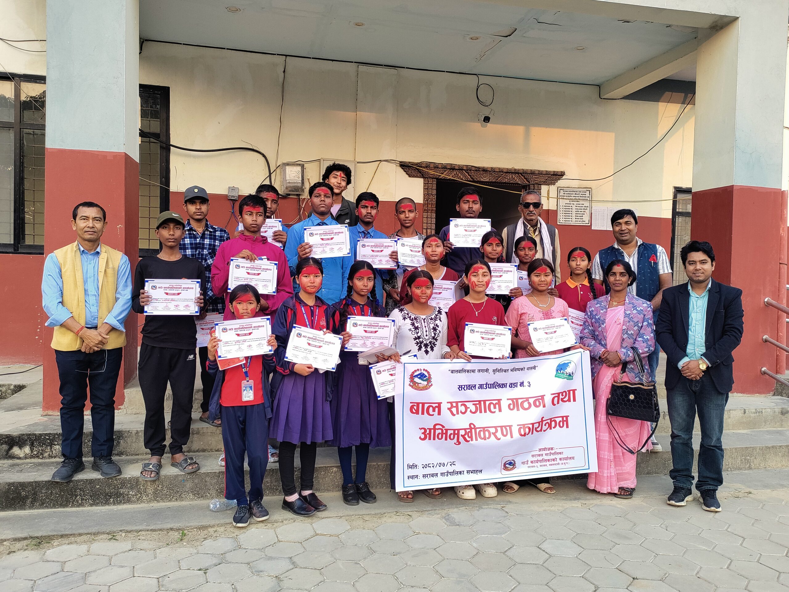 राष्ट्रिय दैनिक / नवलपरासी ,२९ कार्तिक पश्चिम नवलपरासीकाे सरावल गाउँपालिका वडा नं. ३ मा शुक्रबार आयोजना गरिएको बाल सञ्जाल गठन तथा अभिमुखीकरण कार्यक्रम सफलतापूर्वक सम्पन्न भएको छ। सरावल गाउँपालिका वडा नं. ३ मा बाल अधिकार प्रवर्द्धन तथा स्थानीयस्तरमा बाल नेतृत्व संरचना संस्थागत गर्ने उद्देश्यसहित वडास्तरीय बाल सञ्जाल गठन तथा अभिमुखीकरण सम्पन्न भएको हाे। सरावल गाउँपालिकाद्वारा आयोजित कार्यक्रम बालमैत्री स्थानीय शासन प्रवर्द्धनतर्फको महत्वपूर्ण कदमका रूपमा रहेको सरोकारवालाले बताएका छन्। कार्यक्रममा सरावल गाउँपालिका अध्यक्ष सुखाडी प्रसाद चौधरीले बालबालिकाको आवाजलाई योजनादेखि कार्यान्वयन तहसम्म प्रभावकारी रूपमा पुर्याउन बाल सञ्जाल महत्वपूर्ण संयन्त्र भएको उल्लेख गरे। “बालमैत्री पालिका निर्माण हाम्रो प्राथमिकता हो। बालपूर्वाधार, संरक्षण र सहभागितामूलक विकासका लागि बच्चाहरू स्वयं नेतृत्वमा आउनुपर्छ,” — अध्यक्ष चौधरीले भने। गाउँपालिका उपाध्यक्ष बासमती हरिजनले बाल सञ्जाललाई सक्षम, सक्रिय र उत्तरदायी संस्थाको रूपमा अघि बढाउन पालिकाको निरन्तर सहयोग रहने बताइन्। उनका अनुसार बालअधिकारमैत्री वातावरण विस्तार गर्न बालमैत्री कार्यक्रम, अनुगमन र क्षमता अभिवृद्धि प्रशिक्षणलाई अघि बढाइनेछ। नियमित कार्ययोजना, नेतृत्व विकास र बालहित सम्बन्धी अभियान सञ्चालन गर्ने उद्देश्यसहित दुई वर्ष कार्यकाल रहने गरी नयाँ समिति यसरी गठन गरिएको छ। जसको अध्यक्षमा सारदा पाण्डेय ,उपाध्यक्षमा आशुतोष यादव ,सचिवमा पूजा सहानी,सह–सचिवमा अनु बि.क र कोषाध्यक्षमा धनराज हरिजन चयन भएका हुन । सदस्यहरूमा विज्ञान हरिजन, दिलिप प्रजापति, प्रेम नारायण चौधरी, रोजी शाही, लालकृष्ण अग्रहरी, जेनिशा चौधरी, हरिकला चौधरी, सागर थारु, निशा हरिजन, कृतिका चौधरी, नागेश्वर हरिजन, सत्या प्रजापति, नागेन्द्र राजभर र मधु जयसवाल चयन भएका हुन । कार्यक्रममा सरावल उद्योग वाणिज्य संघका अध्यक्ष शुसान्त शर्मा घिमिरे, समाजसेवी हरिलाल यादव, पालिका बाल सहजकर्ता सञ्जय मौर्य, बालपुरी बाल क्लबकी अध्यक्ष अञ्जली रौनियारलगायत सहभागीहरूले बाल सञ्जाललाई नीति संवाद, अधिकार संरक्षण र व्यवहारिक नेतृत्व अभिवृद्धिको महत्वपूर्ण प्लेटफर्मका रूपमा उपयोग गर्न सुझाव दिए। सम्पूर्ण कार्यक्रमको सहजीकरण बाल अभियन्ता उमेश बी.कले गर्दै सहभागी बालबालिकालाई बाल अधिकार, नेतृत्व, बालमैत्री शासन,बाल सन्जालकाे काम कर्तव्य र सामाजिक उत्तरदायित्वसम्बन्धी प्रशिक्षण प्रदान गरेका थिए। राष्ट्रिय दैनिक राष्ट्रिय दैनिक एक लोकप्रिय नेपाली समाचार पोर्टल हो। हामी सत्य तथ्य निश्पक्ष र सन्तुलित समाचार सम्प्रेषण गर