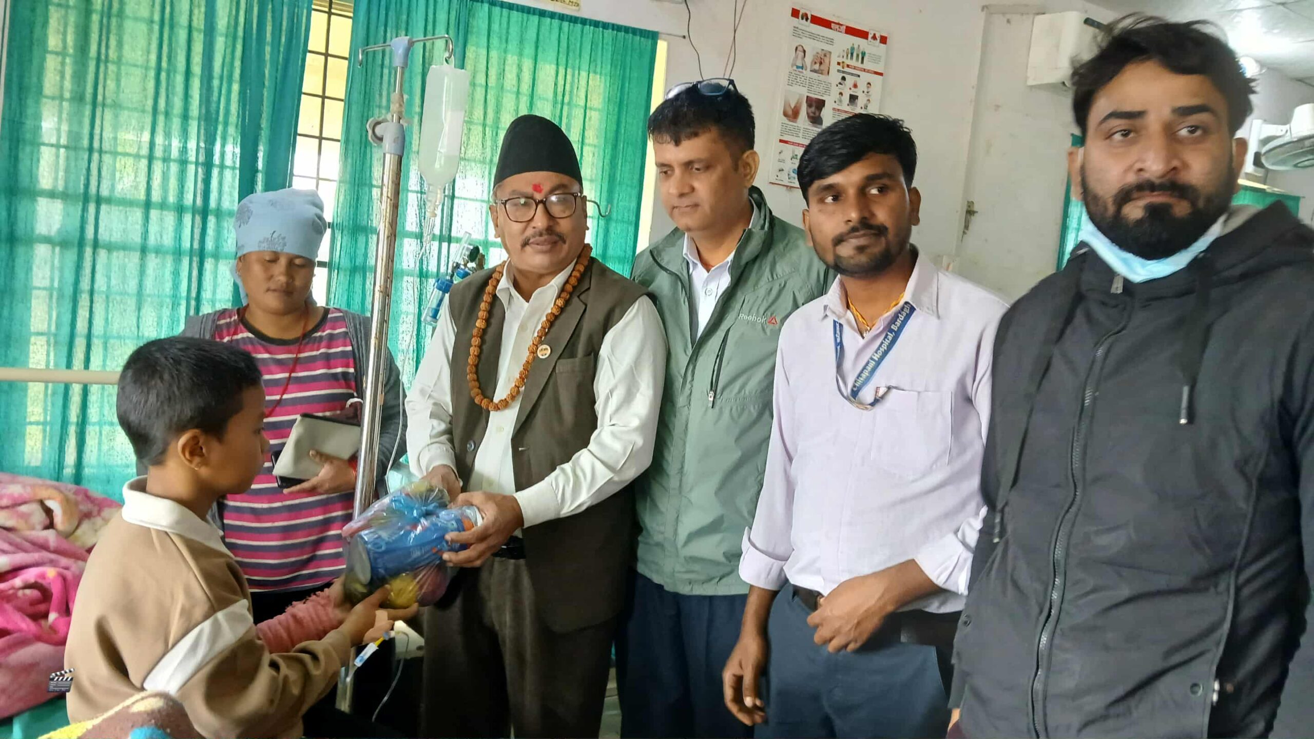 राष्ट्रिय दैनिक /नवलपरासी,३० कार्तिक बर्दघाट नगरपालिकाका नगरप्रमुख शम्भुलाल श्रेष्ठले आफ्नो जन्मोत्सव सामाजिक सेवामूलक गतिविधिबाट मनाउँदै विभिन्न अस्पतालका बिरामी तथा आश्रित बालबालिकामझ फलफुल वितरण गरेका छन्। मेयर श्रेष्ठले चिसापानी अस्पताल, शहीद स्मृति अस्पताल चौपत्ता तथा सहयात्री नेपालमा आश्रय लिइरहेका बालबालिकालाई फलफुल वितरण गर्दै उनीहरूको शीघ्र स्वास्थ्यलाभ र उज्ज्वल भविष्यको शुभकामना व्यक्त गरे। गत वर्ष जन्मोत्सवका अवसरमा विद्यार्थीहरूलाई शैक्षिक सामग्री वितरण गरेर समाजमा सकारात्मक सन्देश दिएका मेयर श्रेष्ठले यस वर्ष पनि सामाजिक उत्तरदायित्वलाई प्राथमिकतामा राख्दै सेवा केन्द्रित कार्यक्रम सम्पन्न गरेका हुन्। जन्मदिनमा हुने फजुल खर्चलाई न्यूनिकरण गर्दै समाजोपयोगी कार्यमा सहभागी हुन सबैलाई आग्रह गर्दै उनले भने, “सानासाना प्रयासहरूले नै समाज रुपान्तरणमा ठूलो प्रभाव पार्छन्।” आगामी दिनहरूमा पनि यस्ता समाजसेवी कार्यक्रमलाई निरन्तरता दिने प्रतिवद्धता व्यक्त गर्दै मेयर श्रेष्ठले नगरबासीबाट सहयोग र साथको अपेक्षा व्यक्त गरे। राष्ट्रिय दैनिक राष्ट्रिय दैनिक एक लोकप्रिय नेपाली समाचार पोर्टल हो। हामी सत्य तथ्य निश्पक्ष र सन्तुलित समाचार सम्प्रेषण गर्ने तर्फ उद्दत छौँ । हाम्रा टोल,समाज, शहर वा आम जनताका चुलो चौको देखि सदन सम्म अथवा समाजका उदाहरणीय ब्यक्ति, रास्ट्रका पहरेदार हरेक बिषय हाम्रा समाचारका श्रोत हुन् । आवाज बिहिनहरुको आवाजमा साथ अनि सरकारको बेथितिमा हाम्रो निगरानी हुनेछ । हामी राजनितीको रंग भर्दैनौं तर राजनितीको चेतना अवश्य भर्ने छौं ।