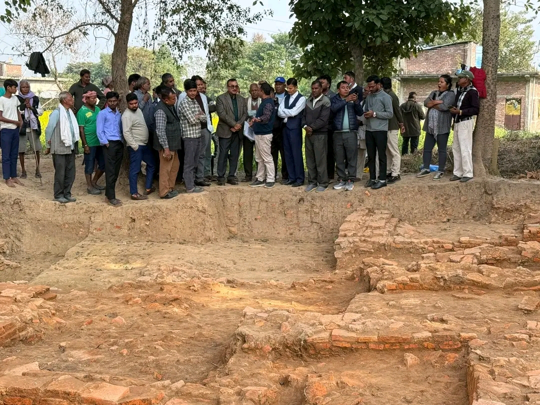 रामग्राम–१८ पण्डितपुरमा उत्खननका क्रममा ऐतिहासिक संरचना फेला, कांग्रेस केन्द्रीय सदस्य कण्डेलद्वारा स्थल अवलोकन
