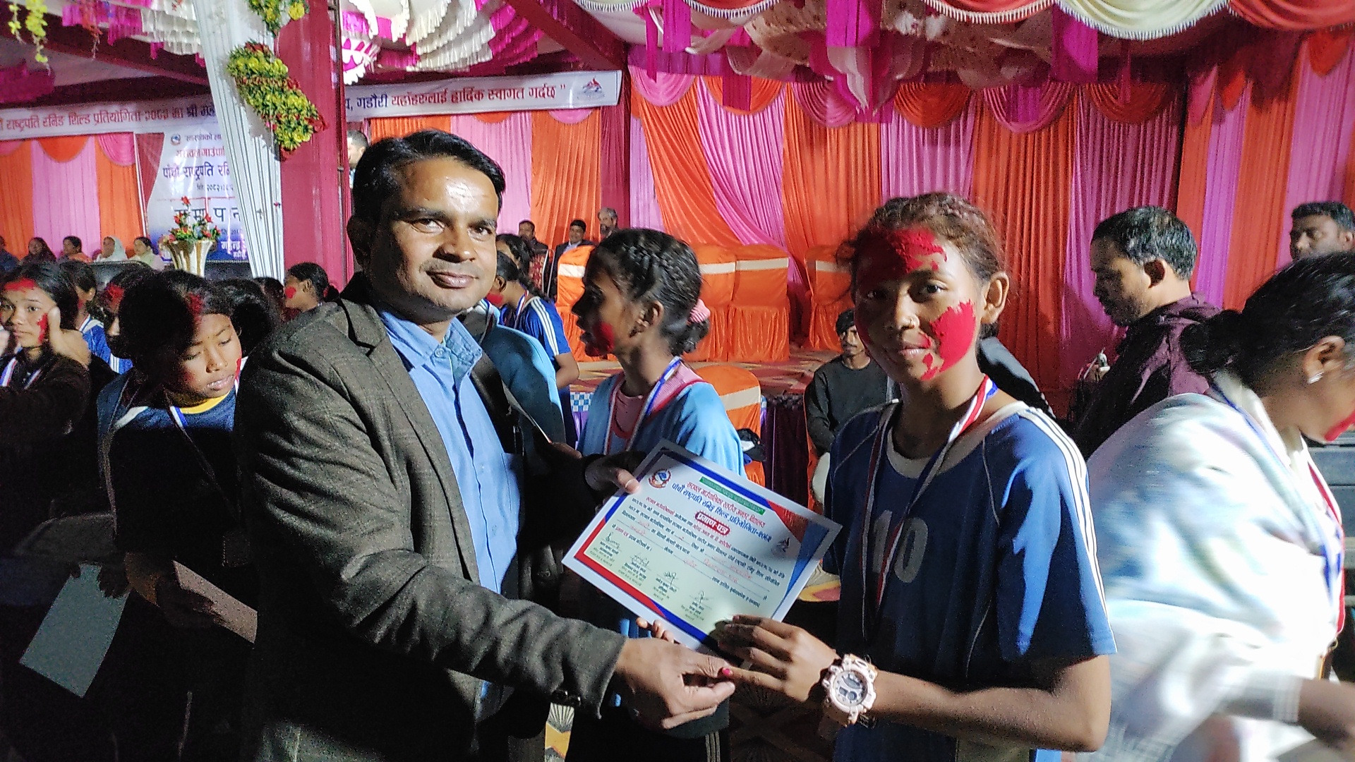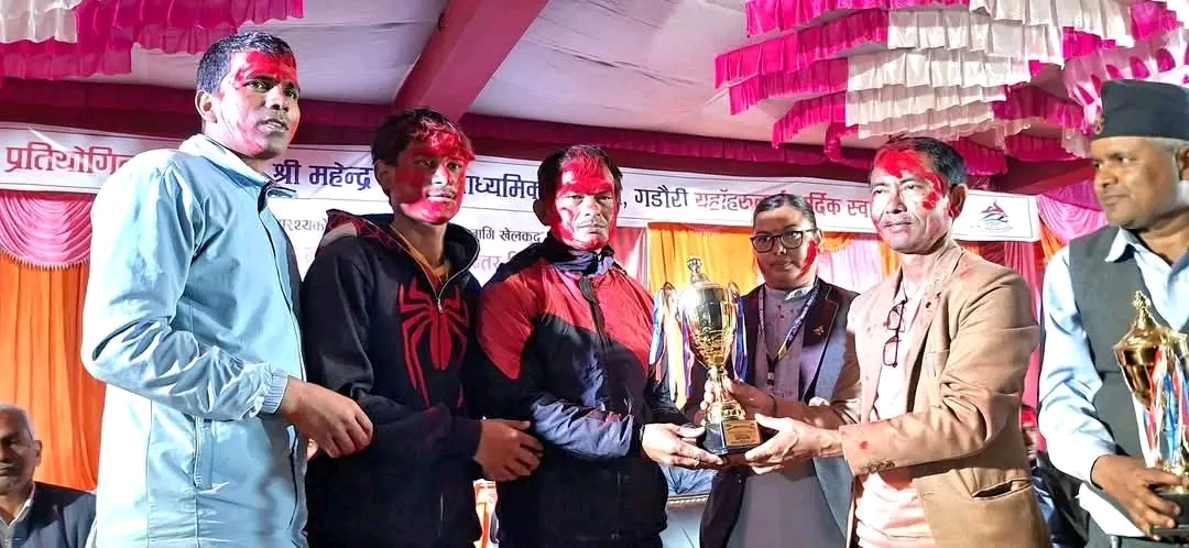 राष्ट्रिय दैनिक / नवलपरासी ,३ पुस पश्चिम नवलपरासीको सरावल गाउँपालिकामा आयोजना गरिएको गाउँपालिका स्तरीय अन्तरविद्यालय पाँचौँ राष्ट्रपति रनिङ शिल्ड प्रतियोगिता भव्य रूपमा सम्पन्न भएको छ । सरावल गाउँपालिका वडा नं. ६ गडौरीस्थित महेन्द्र जनता माध्यमिक विद्यालयको खेलमैदानमा सम्पन्न प्रतियोगिताको समापन समारोह विद्यालय व्यवस्थापन समितिका अध्यक्ष जन्मेजय यादवको अध्यक्षता तथा गाउँपालिका अध्यक्ष सुखाडी प्रसाद चौधरीको प्रमुख आतिथ्यतामा सम्पन्न भएको हो । समापन समारोहलाई सम्बोधन गर्दै प्रमुख अतिथि अध्यक्ष चौधरीले खेलकुदले विद्यार्थीहरूको शारीरिक, मानसिक तथा नैतिक विकासमा महत्वपूर्ण योगदान पुर्याउने उल्लेख गर्दै स्थानीय तहबाट खेलकुद प्रतिभाको पहिचान र विकासमा निरन्तर लगानी गरिने प्रतिबद्धता व्यक्त गरे । उनले विद्यालयस्तरबाटै खेल संस्कृतिको विकास आवश्यक रहेकोमा जोड दिए । कार्यक्रममा गाउँपालिका उपाध्यक्ष बासमति हरिजन, वडा नं. ६ का वडा अध्यक्ष छोटेलाल गुप्ता, वडा नं. ५ का वडा अध्यक्ष लक्ष्मण चौधरी, शिक्षा शाखा प्रमुख प्रमोद यादव, उद्योग वाणिज्य संघ सरावलका अध्यक्ष सुशान्त शर्मा घिमिरे, वरिष्ठ उपाध्यक्ष बिरेन्द्र यादवलगायत स्थानीय जनप्रतिनिधि, शिक्षा क्षेत्रका अधिकारी तथा विभिन्न संघ–संस्थाका प्रतिनिधिहरूको उपस्थिति रहेको थियो । प्रतियोगितामा सरावल गाउँपालिकाभित्रका १७ वटा सामुदायिक तथा संस्थागत विद्यालयका छात्र–छात्राहरूले सहभागिता जनाएका थिए । एथलेटिक्स, कबड्डी, भलिबल लगायत विभिन्न खेल विधामा प्रतिस्पर्धा भएको थियो । प्रतियोगितामा महेन्द्र जनता माध्यमिक विद्यालय,गडौरी ९ स्वर्ण,५ रजत र ३ कास्य गरी जम्मा १७ पदकसहित गाउँपालिका प्रथम भएको हाे। त्यस्तै बसन्त माध्यमिक विद्यालय,बसन्तपुर ५ स्वर्ण, ६ रजत र ४ कास्य गरी जम्मा १५ पदकसहित गाउँपालिका द्वितीय भएको हाे । त्यस्तै जनता माध्यमिक विद्यालय,भुजहा ५ स्वर्ण, २ रजत र ९ कास्य गरी जम्मा १६ पदकसहित गाउँपालिका तृतीय भएको महेन्द्र जनता माध्यमिक विद्यालयको प्रधानाध्यापक श्रवण सहानीले जानकारी दिनुभयो । समापन समारोहमा विजयी विद्यालय तथा उत्कृष्ट खेलाडीहरूलाई ट्रफी,मेडल,पदक र प्रमाणपत्र प्रदान गरिएको थियो । प्रतियोगिताले विद्यार्थीहरूमा खेलकुदप्रति रुचि बढाउनुका साथै अनुशासन, प्रतिस्पर्धात्मक भावना र आपसी सद्भाव विकासमा महत्वपूर्ण योगदान पुर्याएको आयोजकले बताएका छन् । राष्ट्रिय दैनिक राष्ट्रिय दैनिक एक लोकप्रिय नेपाली समाचार पोर्टल हो। हामी सत्य तथ्य निश्पक्ष र सन्तुलित समाचार सम्प्रेषण गर्ने तर्फ उद्दत छौँ । हाम्रा टोल,समाज, शहर वा आम जनताका चुलो चौको देखि सदन सम्म अथवा 