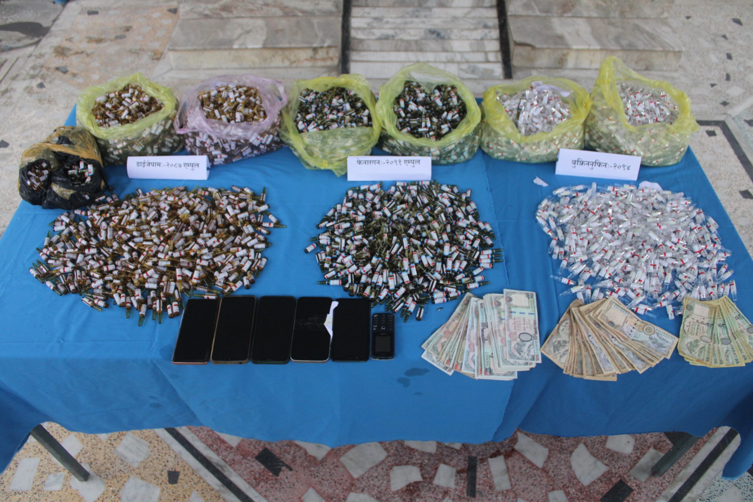 लागूऔषधसहित दुई भारतीय र दुई नेपाली नागरिक नियन्त्रणमा अनिल बनिया / नवलपरासी ,८ पुस नवलपरासीमा लागूऔषध ओसार–पसार तथा बिक्री–वितरण भइरहेको भन्ने विशेष सूचनाका आधारमा प्रहरीले चार जनालाई ठूलो परिमाणको लागूऔषधसहित पक्राउ गरेको छ। लागूऔषध नियन्त्रण ब्यूरो शाखा कार्यालय भैरहवा र जिल्ला प्रहरी कार्यालय पश्चिम नवलपरासीबाट खटिएको संयुक्त प्रहरी टोलीले सोमबार साँझ करिब ५ बजे परासी बजार आसपासबाट अपरेशन सुरु गरेको थियो। अपरेशनका क्रममा रामग्राम नगरपालिका–१२ पचगावाबाट लु ७२ प २९१३ नम्बरको मोटरसाइकलमा सवार पाल्हीनन्दन गाउँपालिका–६ पडरीका ३० वर्षीय शहरेदिन अन्सारी जोलाहा र १९ वर्षीय कृष्णकुमार चौधरीलाई पक्राउ गरिएको प्रहरीले जनाएको छ। उनीहरूको साथबाट डाईजेपाम, फेनरागन र बुप्रेनोर्फिन गरी ४५० एम्पुल लागूऔषध बरामद गरिएको छ। थप अनुसन्धानका क्रममा प्राप्त सूचनाका आधारमा सोही दिन साँझ पाल्हीनन्दन गाउँपालिका–४ लोकपुरवा नजिक नहरछेउमा भारत उत्तर प्रदेश महाराजगंज जिल्लाका २७ वर्षीय ईरसाद अली र २४ वर्षीय नवि रसुल सवार युपी ५६ बिई ५५३७ नम्बरको मोटरसाइकल रोकी जाँच गर्दा ठूलो परिमाणको लागूऔषध फेला परेको प्रहरीले जनाएको छ। उक्त मोटरसाइकलबाट डाईजेपाम १,४९४ एम्पुल, फेनरागन १,४९८ एम्पुल, बुप्रेनोर्फिन १,४९१ एम्पुल र नगद ४० हजार रुपैयाँ बरामद गरिएको हो। यसैक्रममा शहरेदिन अन्सारी जोलाहाको घर (पाल्हीनन्दन–६ पडरी) मा रीतपूर्वक खानतलासी गर्दा थप डाईजेपाम ४४३ एम्पुल, फेनरागन ४४३ एम्पुल र बुप्रेनोर्फिन ४५३ एम्पुल समेत बरामद गरिएको प्रहरीले जानकारी दिएको छ। प्रहरीका अनुसार चारै जनाबाट कुल डाईजेपाम २,०८७ एम्पुल, फेनरागन २,०९१ एम्पुल र बुप्रेनोर्फिन २,०९४ एम्पुल गरी जम्मा ६,२७२ एम्पुल लागूऔषध, दुई थान मोटरसाइकल र नगद ४० हजार रुपैयाँ नियन्त्रणमा लिइएको छ। पक्राउ परेकाहरूमाथि नवलपरासी जिल्ला अदालतबाट सोमबारदेखि लागू हुने गरी १० दिनको म्याद थप गरिएको छ। घटनाबारे थप अनुसन्धान भइरहेको जिल्ला प्रहरी कार्यालय पश्चिम नवलपरासीले जनाएको छ। राष्ट्रिय दैनिक राष्ट्रिय दैनिक एक लोकप्रिय नेपाली समाचार पोर्टल हो। हामी सत्य तथ्य निश्पक्ष र सन्तुलित समाचार सम्प्रेषण गर्ने तर्फ उद्दत छौँ । हाम्रा टोल,समाज, शहर वा आम जनताका चुलो चौको देखि सदन सम्म अथवा समाजका उदाहरणीय ब्यक्ति, रास्ट्रका पहरेदार हरेक बिषय हाम्रा समाचारका श्रोत हुन् । आवाज बिहिनहरुको आवाजमा साथ अनि सरकारको बेथितिमा हाम्रो निगरानी हुनेछ । हामी राजनितीको रंग भर्दैनौं तर राजनितीको चेतना अवश्य भर्ने छौं ।