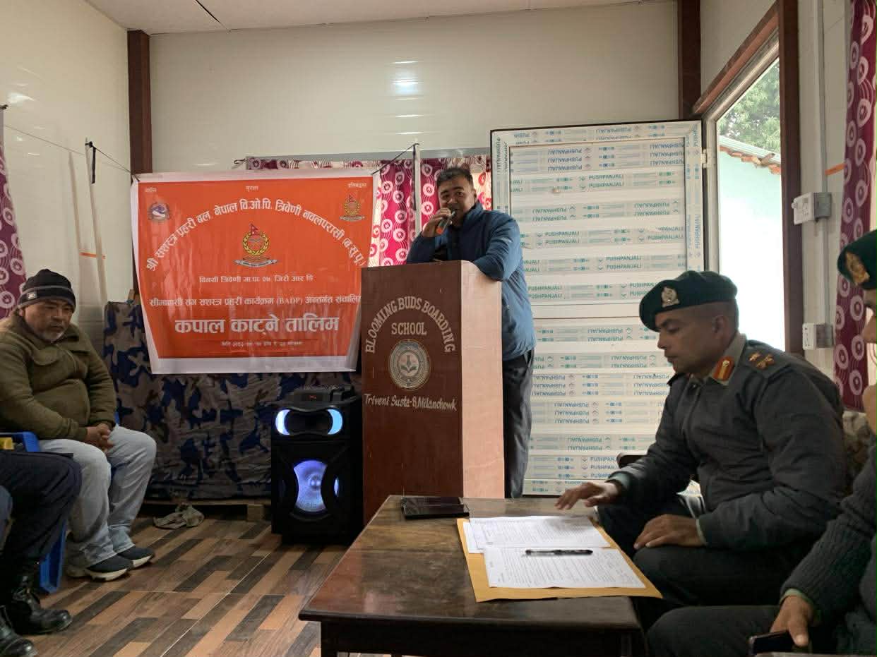 आरपि उपाध्याय /त्रिवेणी ,१५ पुस सशस्त्र प्रहरी बल नेपाल बि.ओ.पी. त्रिवेणी (ब.स.पु.) विनयी त्रिवेणी ७ को आयोजनामा कपाल काट्ने तालिम एक कार्यक्रमका बिच सोमबार शुभारम्भ भएको छ। “सिमा बासी संग सशस्त्र प्रहरी बल” कार्यक्रम अन्तर्गत सञ्चालित कपाल काट्ने तालिमको शुभारम्भ भएको हो। तालिम शुभारम्भ कार्यक्रमको उद्घाटन गर्दै सशस्त्र प्रहरी बल ३१ न. गुल्मका गुल्मपती सशस्त्र प्रहरी नायब उपरीक्षक लक्ष्मण बरालले नेपालमा कपाल काट्ने व्यक्तिको कमीले सिमापार भारतका व्यक्तिद्वारा कपाल काट्ने अवस्था रहेकोमा अब नेपालमै दक्ष जनशक्ति उत्पादन गरि कपाल काट्ने कार्यलाई अगाडि बढाउन यो तालिम फलदायी रहने धारणा राख्नुभयो। उहाँले नेपालको ग्रामीण र सहरहरूमा बेरोजगार युवा शक्तिलाई कपाल काट्ने तथा अन्य सीपमूलक कार्यक्रमबाट बेरोजगारीको समस्या समाधान गर्ने कार्यक्रमको लक्ष्य रहेको पनि जिकिर गर्नुभयो। कार्यक्रममा विनयी त्रिवेणी ६ का वडा अध्यक्ष नुरेन्द्र शाह,वडा न.७ का वडा अध्यक्ष उमेश कार्की लगायतले कपाल काट्ने तालिमबाट बेरोजगारी युवायुवतीलाई रोजगारी मिल्ने र स्वावलम्बन शिक्षा प्रदान हुने धारणा राखेका थिए। विनयी त्रिवेणी वडा न.६ र ७ बाट उपस्थित भएका २० को सङ्ख्यामा युवा जनशक्तिलाई कपाल काट्ने तालिममा सहभागी गराइएको बि.ओ.पी. प्रमुख मङ्गल सिंह धामीले जानकारी दिनुभएको छ। कपाल काट्ने तालिम पौष १४ गतेदेखि पौष २५ गतेसम्म त्रिवेणी बि.ओ.पि. प्राङ्गणमा दक्ष प्रशिक्षक प्रकाश नाउँले प्रशिक्षण दिनुहुने बताइएको थियो। उक्त तालिमबाट आत्मनिर्भर बनाउनुको साथै सानो लगानीमा पनि स्वावलम्बी बनाउने तालिमको लक्ष्य रहेको बताइएको छ। कार्यक्रममा तालिमका सहभागीहरुले केशकर्तक,दारीजुङ्गा ट्रीभिङ,व्यक्तिगत सफाइ,ग्राहक व्यवहार,उपकरणको सुरक्षित प्रयोग तथा साना उद्योग सञ्चालन सम्बन्धि आधारभूत ज्ञान हासिल गरि बेरोजगारीको समस्या समाधान गरि युवायुवतीहरुलाई अनुशासित र सुरक्षित जनशक्ति बनाउने समेत तालिममा जानकारी गराइएको थियो। त्यसैगरी विनयी त्रिवेणी ७ मा सशस्त्र प्रहरी बल नेपाल ३१ न. गुल्म हे.क्वा. (ब.स.पु.) ले सिमा बासी संग सशस्त्र प्रहरी कार्यक्रम अन्तर्गत सञ्चालित अन्तरक्रिया कार्यक्रम पनि सम्पन्न भएको छ। अन्तरक्रिया कार्यक्रममा जनप्रतिनिधि, संघसंस्थाका प्रतिनिधि,व्यापारी, बुद्धिजीवीहरुको उपस्थिति रहेको थियो। सो अवसरमा सहभागीहरुले सिमा क्षेत्रमा शान्ति,सुरक्षा,प्रतिबद्धताको महानतम जिम्मेवारी बोकेको सशस्त्र प्रहरी बलले गर्दै आएको गतिविधि र नागरिक केन्द्रित कार्यक्रम बारे आफ्नो अमुल्य सुझाव दिएका थिए। राष्ट्रिय दैनिक राष्ट्रिय दैनिक एक लोकप्रिय नेपाली समाचार पोर्ट