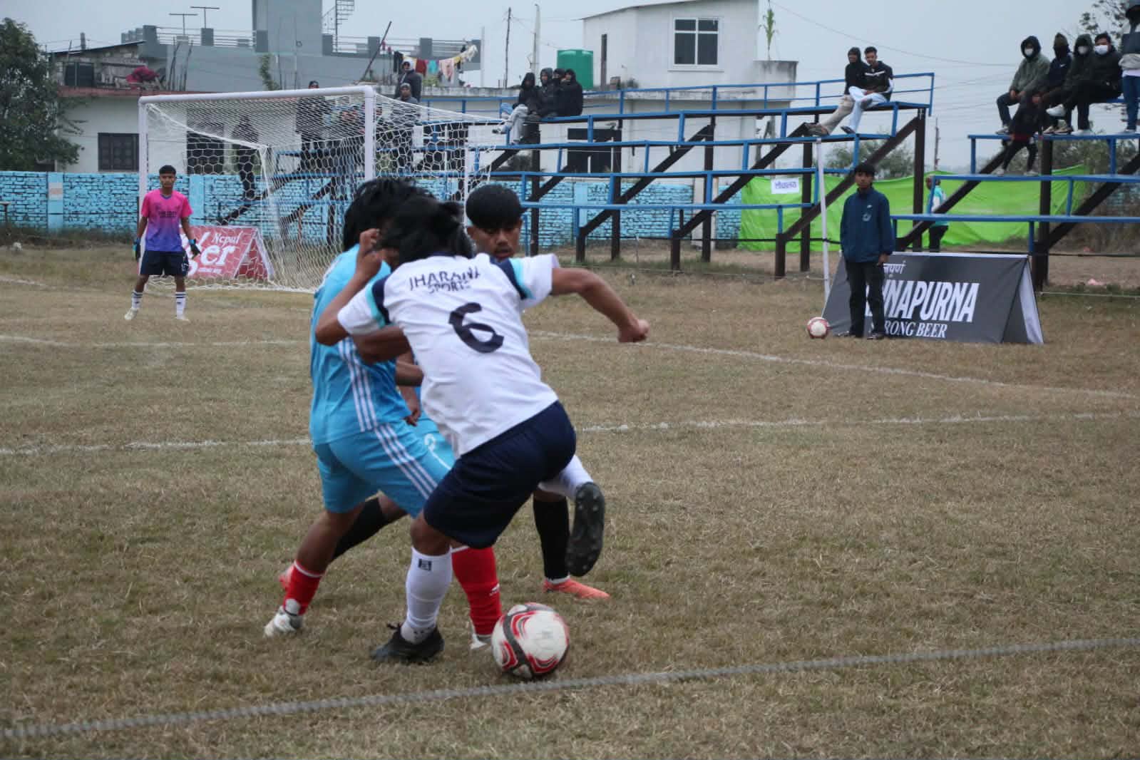 तुलसीराम पौडेल /रुपन्देही ,२१ पौष रुपन्देहीको शुद्वोदन गाउँपालिका -४ सौ फर्साटिकर स्थित फर्साटिकर युवा क्लबको आयोजनामा संचालित १३ औं शुद्वोदन गाउँपालिका फर्साटिकर कप प्रतियोगिता अन्तरगत पौष २० गते आइतबारको खेलमा झरना स्पोर्ट्स क्लब कुन्जलापुर बिजयी भएको छ। आइतबार झरना स्पोर्ट्स क्लब भर्सेस चादनी युवा क्लब बिच भएको प्रतियोगितामा झरना स्पोर्ट्स क्लबले शुन्यका विरुद्ध ४ गोलको अन्तरले चादनी युवा क्लबलाई पराजित गरि विजय भएको हो । झरना स्पोर्ट्स क्लबका जर्सी नम्बर -१७ का खेलाडी सुरज चौधरीले लगातार ४ पटक सम्म गोल हान्न सफल भएका थिए । खेलाडी चौधरीले पहिलो हाफको ८ औ मिनेटमा पहिलो गोल ,२८ औं मिनेटमा दोस्रो गोल , दोस्रो हाफको १६ औं मिनेटमा तेस्रो गोल र ३५ औं मिनेटमा चौथो गोल हान्न सफल भएका थिए । आइतबारको खेलको म्यान अफ द म्याच झरना स्पोर्ट्स क्लबका जर्सी नम्बर १७ का खेलाडी सुरज चौधरी घोषित भए । फर्साटिकर युवा क्लबका अध्यक्ष अमृत खड्काले म्यान अफ द म्याच पुरस्कार प्रदान गर्नुभयो । सोमबार गोर्खा ब्वाइज बुटवल भर्सेस कपिलवस्तु ११ कपिलवस्तु विच प्रतियोगिता हुने क्लबका सचिव राजन खनालले जानकारी दिनुभयो । राष्ट्रिय दैनिक राष्ट्रिय दैनिक एक लोकप्रिय नेपाली समाचार पोर्टल हो। हामी सत्य तथ्य निश्पक्ष र सन्तुलित समाचार सम्प्रेषण गर्ने तर्फ उद्दत छौँ । हाम्रा टोल,समाज, शहर वा आम जनताका चुलो चौको देखि सदन सम्म अथवा समाजका उदाहरणीय ब्यक्ति, रास्ट्रका पहरेदार हरेक बिषय हाम्रा समाचारका श्रोत हुन् । आवाज बिहिनहरुको आवाजमा साथ अनि सरकारको बेथितिमा हाम्रो निगरानी हुनेछ । हामी राजनितीको रंग भर्दैनौं तर राजनितीको चेतना अवश्य भर्ने छौं ।