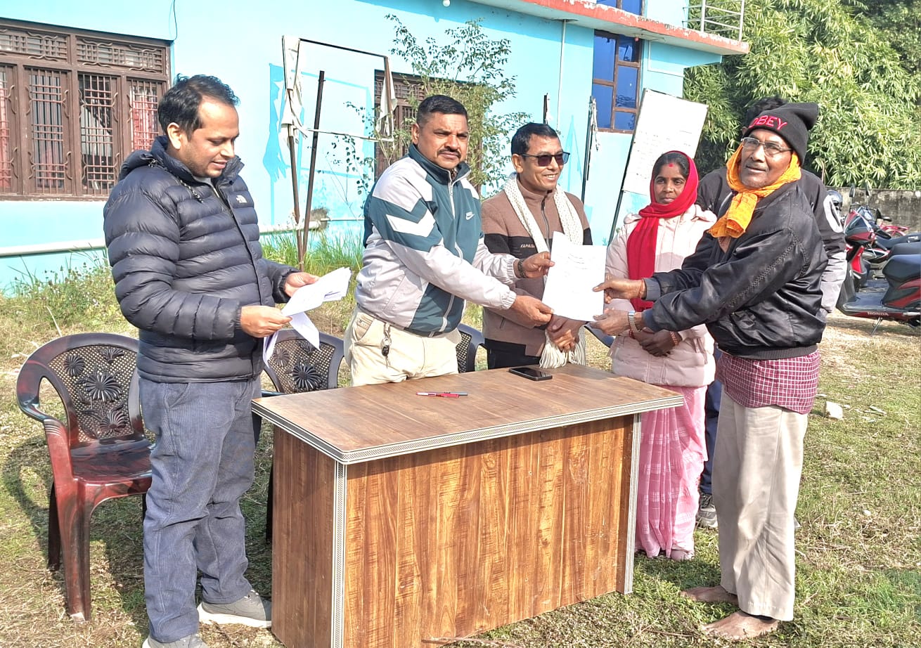 राष्ट्रिय दैनिक / नवलपरासी ,२१ पुस पश्चिम नवलपरासीको सरावल गाउँपालिका वडा नम्बर ४ मा भूमिहीन दलित, भूमिहीन सुकुम्बासी तथा अव्यवस्थित बसोवासीहरूको जग्गा नापी कार्यका लागि पहिलो चरण अन्तर्गत निस्सा वितरण सम्पन्न भएको छ। वडा नम्बर ४ मा मात्रै ५०० जनालाई निस्सा वितरण गरिएको हो। यसैबीच सरावल गाउँपालिका वडा नम्बर १ र ३ मा जग्गा नापी कार्य जारी रहेको गाउँपालिकाले जनाएको छ। गाउँपालिका भरिबाट हालसम्म ३ हजार १०२ वटा आवेदन प्राप्त भएका छन्। निस्सा वितरण कार्यक्रम वडा अध्यक्ष सुरेश यादवको अध्यक्षता तथा गाउँपालिका अध्यक्ष सुखाडी प्रसाद चौधरीको प्रमुख आतिथ्यतामा सम्पन्न भएको हो। निस्सा वितरण गर्दै गाउँपालिका अध्यक्ष चौधरीले भूमिहीन तथा सुकुम्बासी समुदायलाई जग्गा व्यवस्थापन गरी कानुनी स्वामित्व प्रदान गर्ने अभियानलाई गाउँपालिकाले प्राथमिकतामा राखेको बताउनुभयो। उहाँले चरणबद्ध रूपमा जग्गा नापी तथा लालपुर्जा वितरण प्रक्रिया अघि बढाइने जानकारी पनि दिनुभयो। कार्यक्रममा गाउँपालिका उपाध्यक्ष बासमती हरिजन, नापी प्राविधिक निरज प्रजापति, प्रशासन शाखाका राजन बस्याल लगायत जनप्रतिनिधि, कर्मचारी तथा सरोकारवालाहरूको उल्लेखनीय उपस्थिति रहेको थियो। स्थानीय तहको सक्रियतामा अघि बढेको यस अभियानले भूमिहीन तथा अव्यवस्थित बसोवासीको दीर्घकालीन समस्या समाधानतर्फ ठोस आधार तयार गर्ने विश्वास व्यक्त गरिएको छ। राष्ट्रिय दैनिक राष्ट्रिय दैनिक एक लोकप्रिय नेपाली समाचार पोर्टल हो। हामी सत्य तथ्य निश्पक्ष र सन्तुलित समाचार सम्प्रेषण गर्ने तर्फ उद्दत छौँ । हाम्रा टोल,समाज, शहर वा आम जनताका चुलो चौको देखि सदन सम्म अथवा समाजका उदाहरणीय ब्यक्ति, रास्ट्रका पहरेदार हरेक बिषय हाम्रा समाचारका श्रोत हुन् । आवाज बिहिनहरुको आवाजमा साथ अनि सरकारको बेथितिमा हाम्रो निगरानी हुनेछ । हामी राजनितीको रंग भर्दैनौं तर राजनितीको चेतना अवश्य भर्ने छौं ।