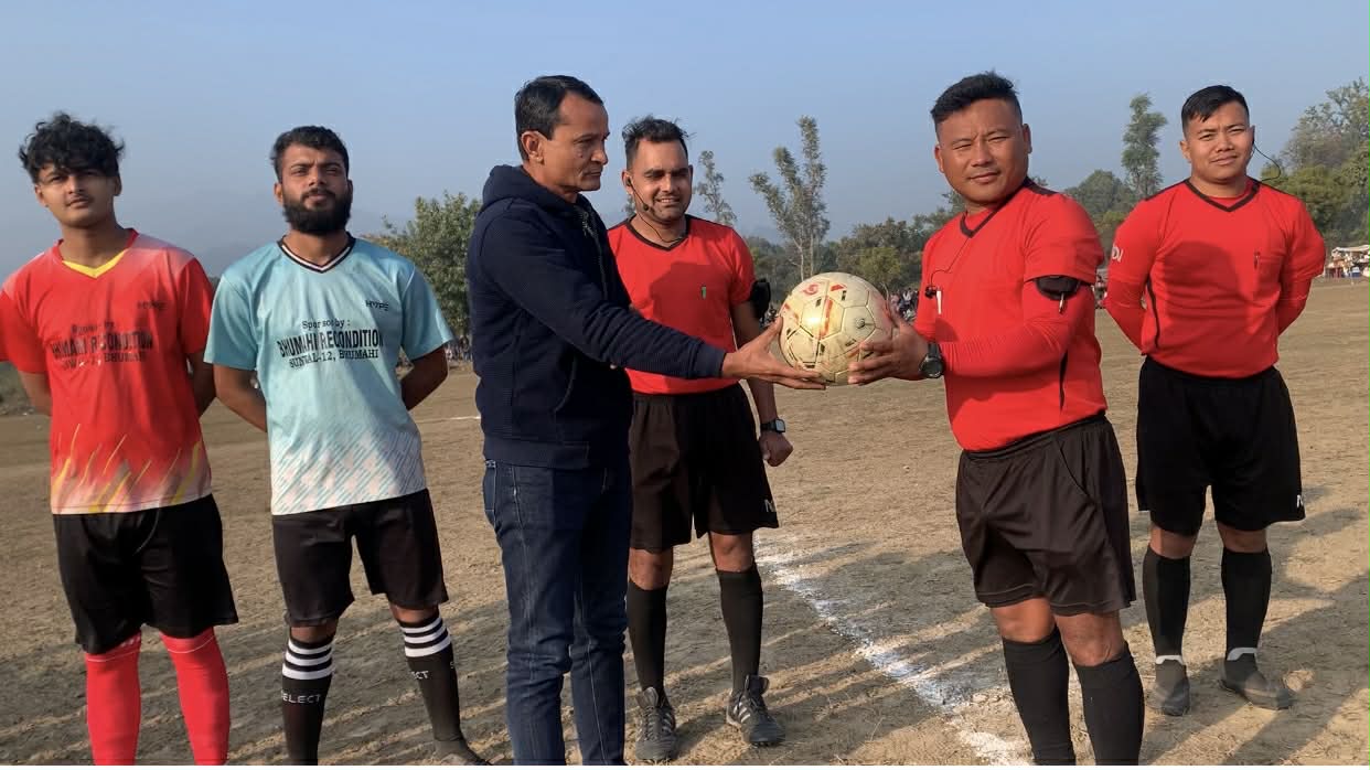 आरपि उपाध्याय / त्रिवेणी ,२५ पुस पुर्वी नवलपरासीको विनयी त्रिवेणीको ६ मा सञ्चालन भैरहेको प्रथम त्रिवेणी गोल्ड कप फुटबल प्रतियोगिताको दोस्रो सेमिफाइनल खेल बिहीबार सम्पन्न भएको छ। त्रिवेणी युवा क्लबको आयोजनामा भएको फुटबल प्रतियोगिता सञ्चालन भएको दोस्रो सेमिफाइनल खेलमा भुमही रिकन्डिसन फुटबल क्लब र भारत बिहार पश्चिमी चम्पारणको हर्नाटाड फुटबल क्लबबिच प्रतिस्पर्धा भएको थियो। दोस्रो सेमिफाइनल संघर्षपुर्ण खेलमा भुमही रिकन्डिसन फुटबल टिमले भारत बिहारको हर्नाटाड क्लबलाई ४/२ गोलले पराजित गरेको खेल संयोजक पवन गुरुङले जानकारी दिनुभएको छ। “वन,वन्यजन्तु तथा वातावरण संरक्षण र धार्मिक पर्यटन प्रवर्द्धनको लागि खेलकुद” भन्ने मुल नाराका साथ आयोजना गरिएको फुटबल प्रतियोगितामा नेपाल भारतका कुल १० फुटबल टिमहरुको सहभागीता रहेको थियो। दोस्रो सेमिफाइनल खेल सुभारम्भ हुनुपूर्व नेपाल भारतको राष्ट्रिय गान सहित खेल सुरुवात भएको क्लबका अध्यक्ष अमर भट्टराई क्षेत्रीले बताउनु भयो। खेल प्रारम्भ हुनुपूर्व नेपाली काङ्ग्रेस विनयी त्रिवेणी गाउँपालिका का सभापति अजित कुमार थापाले खेलाडीहरुलाई शुभकामना दिदै रेफ्रीलाई फुटबल दिई खेल प्रारम्भ भएको आयोजकले बताएको छ। फुटबल खेलको फाइनल म्याच पौष २६ गते हुने जानकारी गराइएको छ भने उक्त फाइनल खेलमा आयोजक त्रिवेणी युवा क्लब र भुमही फुटबल टिम बिच प्रतिस्पर्धा हुने जानकारी प्राप्त भएको छ। राष्ट्रिय दैनिक राष्ट्रिय दैनिक एक लोकप्रिय नेपाली समाचार पोर्टल हो। हामी सत्य तथ्य निश्पक्ष र सन्तुलित समाचार सम्प्रेषण गर्ने तर्फ उद्दत छौँ । हाम्रा टोल,समाज, शहर वा आम जनताका चुलो चौको देखि सदन सम्म अथवा समाजका उदाहरणीय ब्यक्ति, रास्ट्रका पहरेदार हरेक बिषय हाम्रा समाचारका श्रोत हुन् । आवाज बिहिनहरुको आवाजमा साथ अनि सरकारको बेथितिमा हाम्रो निगरानी हुनेछ । हामी राजनितीको रंग भर्दैनौं तर राजनितीको चेतना अवश्य भर्ने छौं ।
