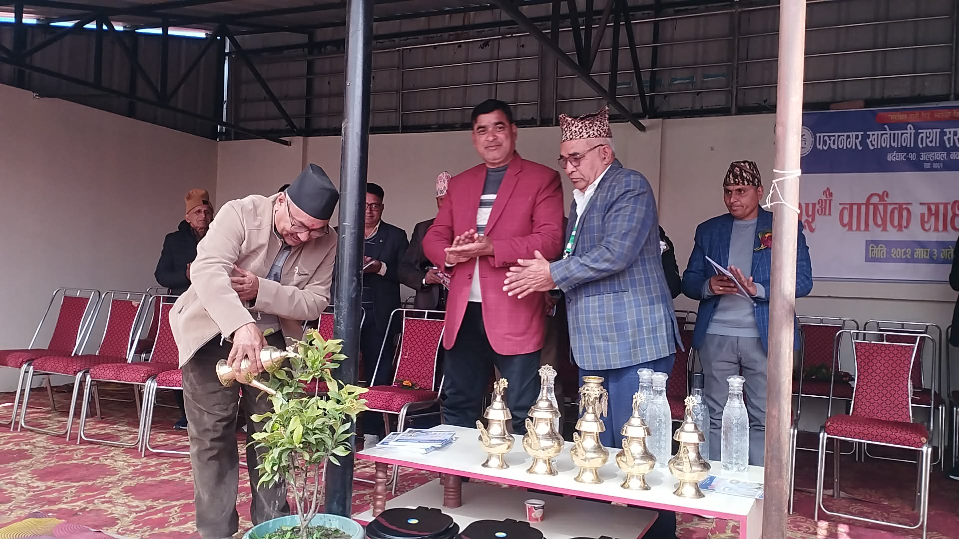 प्रकाश न्यौपाने / नवलपरासी , ३ माघ पश्चिम नवलपरासीको बर्दघाट १०मा रहेको पञ्चनगर खानेपानी तथा सरसफाइ उपभोक्ता संस्थाको १५औँ वार्षिक साधारणसभा सम्पन्न भएको छ। कार्यक्रममा बोल्दै प्रमुख सभामा संविधानसभा सदस्य विक्रम खनालले संघ–संस्थामा समाजका हरेक तह र तप्कालाई समेटेर अघि बढ्न सके मात्र दिगो विकास सम्भव हुने बताउनुभयो। खनालले उपभोक्ताका गुनासालाई सम्बोधन गर्दै उपभोक्तालाई शुद्ध खानेपानी उपलब्ध गराउनुपर्नेमा जोड दिनुभयो। उहाँका अनुसार करिब ९० प्रतिशत रोगहरू पानीकै कारण हुने भएकाले “एक घर–एक धारा” अभियानलाई सबैले मिलेर सफल बनाउन आवश्यक छ। मानव जीवनमा पानीको अत्यन्त महत्वपूर्ण भूमिका रहेको उल्लेख गर्दै उहाँले नगर, प्रदेश र संघीय सरकारले समन्वय गरेर समस्याको समाधान गर्नुपर्ने बताउनुभयो। फरक प्रशङ्गको उठान गर्दै खनालले भ्रष्टाचारमुक्त राष्ट्र निर्माणका लागि जनता स्वयं सचेत र चनाखो हुनुपर्ने उल्लेख गर्दै खनालले समाजको आवश्यकता र चाहनालाई बुझेर निर्णय गर्नुपर्ने धारणा राख्नुभयो। कार्यक्रममा बर्दघाट नगरपालिकाका प्रमुख एब सस्थापक अध्यक्ष शम्भुलाल श्रेष्ठले आगामी वर्ष सम्पूर्ण उपभोक्तालाई शुद्ध खानेपानी पुर्याउने लक्ष्यसहित नगर अगाडि बढेको जानकारी दिनुभयो। उहाँले बर्दघाट नगरपालिकालाई “एक घर–एक धारा” नगर बनाउने उद्देश्यले नेपाल सरकारसँग सशर्त बजेट माग गरी खानेपानीका पाइप, उपकरण तथा धारा जडानको क्षेत्रमा काम गरिने बताउनुभयो। हाल नगरभित्र करिब ७५ प्रतिशत घरधुरीमा धारा जडान भइसकेको र बाँकी २५ प्रतिशत घरधुरीमा धारा पुर्याउने लक्ष्य रहेको उहाँको भनाइ थियो। धारा जडान गर्न नसक्ने उपभोक्तालाई नगरपालिकाले अनुदान दिएर भए पनि धारा जडान गरिने उहाँले स्पष्ट पार्नुभयो। बर्दघाट नगरपालिका–९ का वडाध्यक्ष चन्द्रकान्त चापागाईंले वडा नम्बर ९ मा “एक घर–एक धारा” अभियान पूरा भइसकेको जानकारी दिनुभयो। उहाँका अनुसार गत वर्ष धारा जडान गर्न बाँकी रहेका ८ जना अति विपन्न घरपरिवारलाई बर्दघाट नगरपालिकाको सहयोगमा यस वर्ष धारा जडान गरिसकिएको छ। अब केही दिनभित्र वडा नम्बर ९ लाई “एक घर–एक धारा सम्पन्न वडा” घोषणा गरिने उहाँले बताउनुभयो। जिल्ला खानेपानी उपभोक्ता तथा सरसफाइ महासंघ नवलपरासीका अध्यक्ष देवीदत्त सापकोटाले पञ्चनगर खानेपानी संस्थाले खानेपानी सुरक्षा योजनामा विशेष ध्यान दिनुपर्नेमा जोड दिनुभयो। गुणस्तरीय खानेपानी मुहानदेखि उपभोक्ताको मुखसम्म पुर्याउनुपर्ने उल्लेख गर्दै उहाँले खानेपानी सुरक्षा योजनामार्फत शुद्ध पानी आपूर्ति गर्ने कार्यक्रम अघि बढाउन आग्रह गर्नुभयो। सभाले संस्थाका अध्यक्ष कर्णबहादुर खत्रीले प्रस्तुत गर्