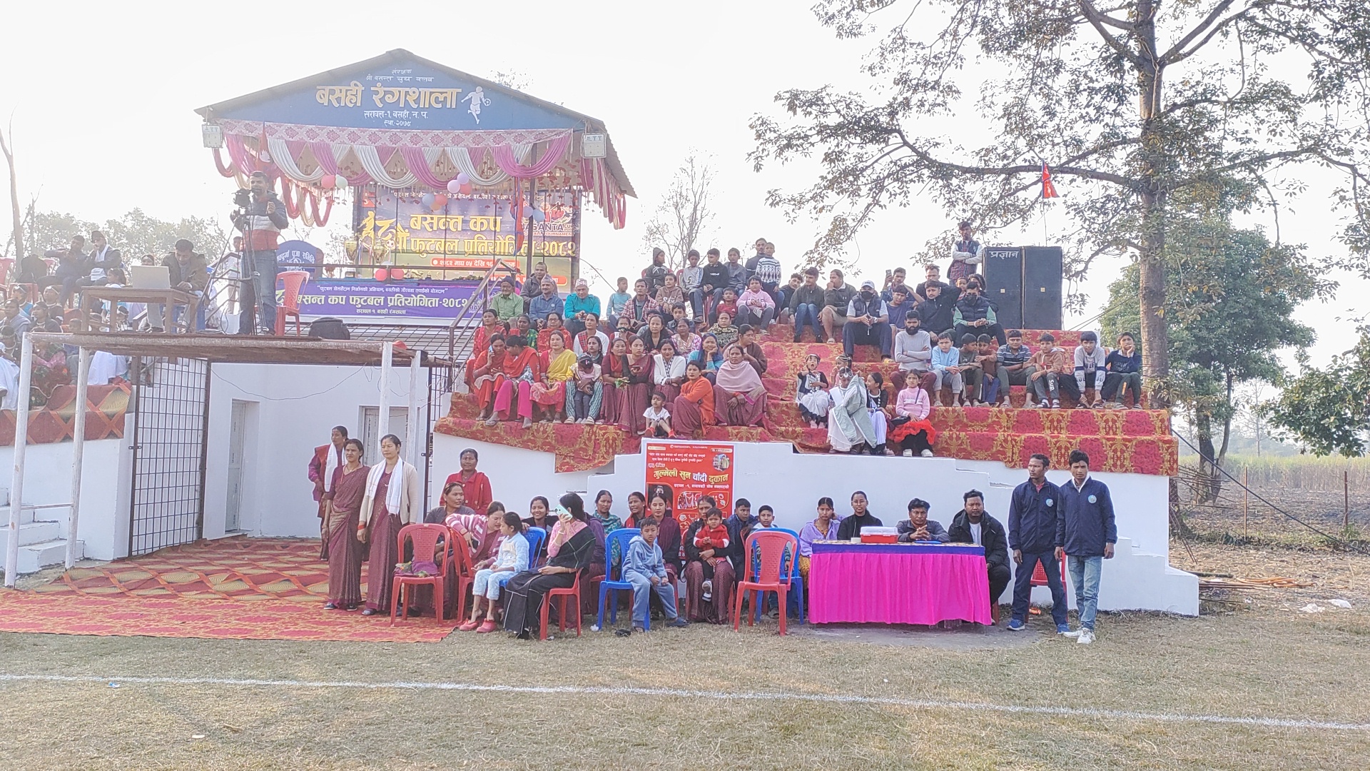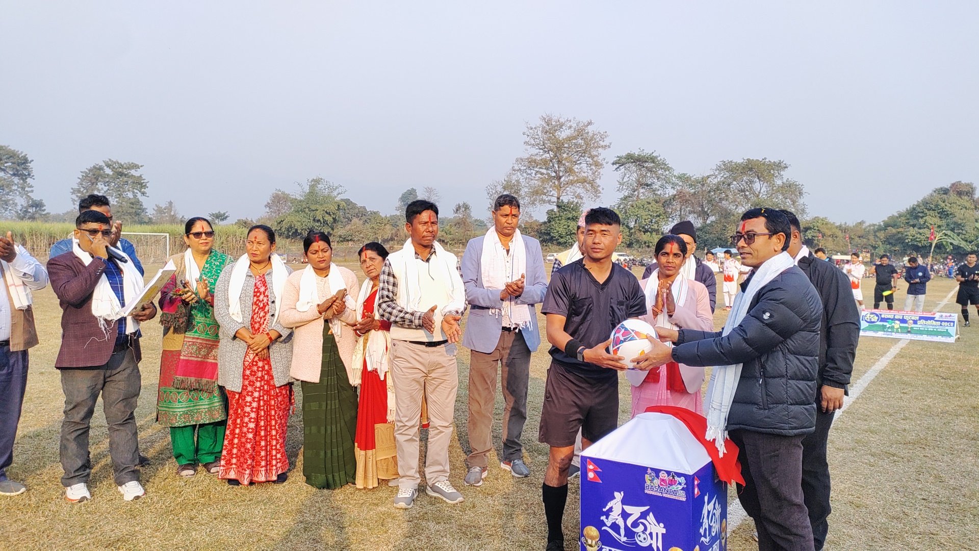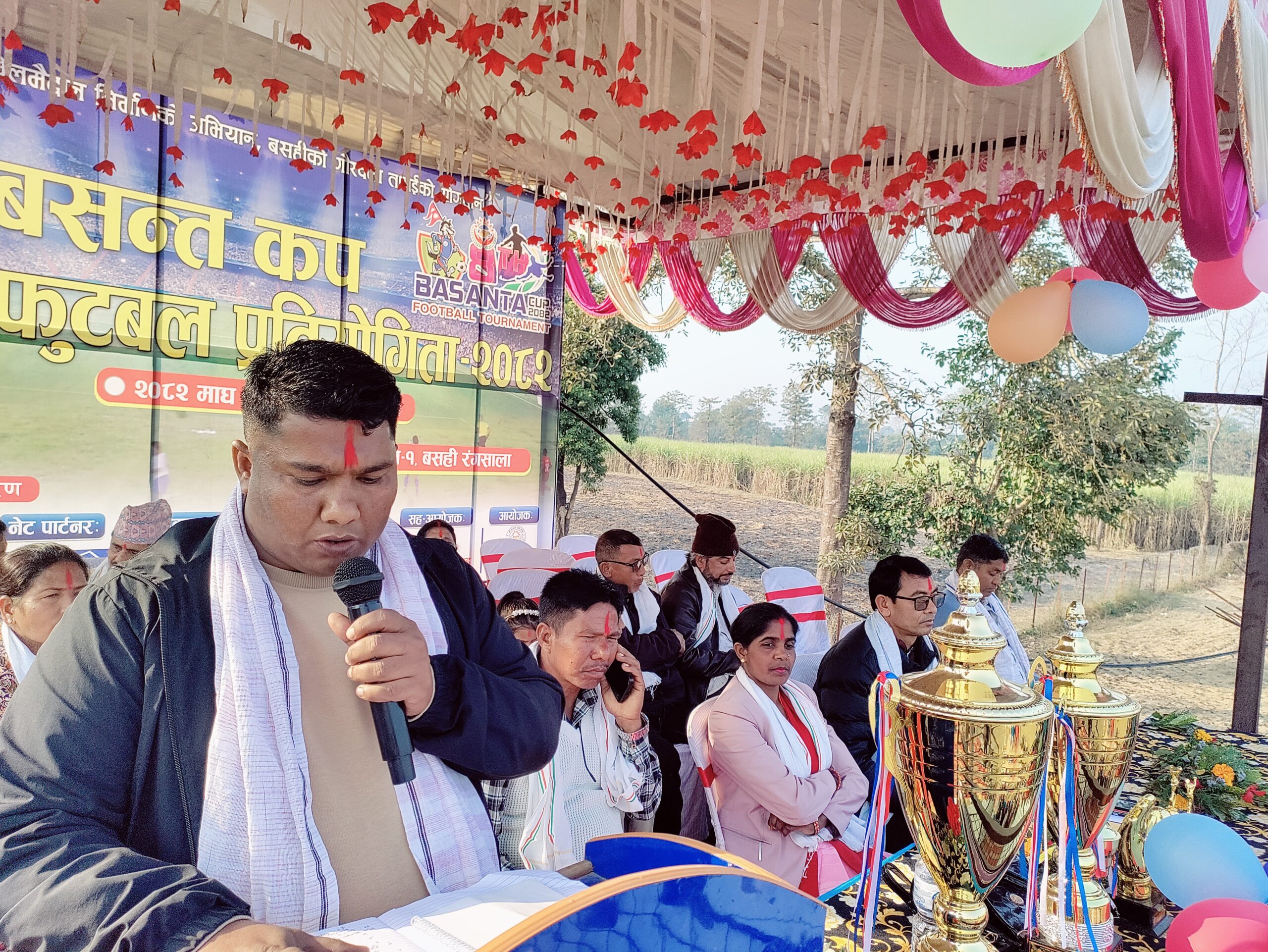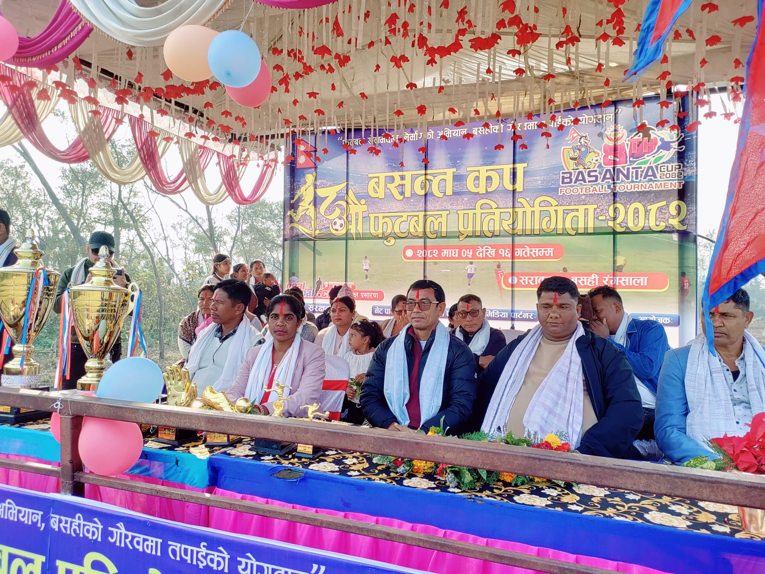 खेलकुदले अनुशासन, एकता र स्वस्थ समाज निर्माणमा योगदान गर्छ : अध्यक्ष चाैधरी उमेश बि.क /नवलपरासी ,५ माघ पश्चिम नवलपरासीको सरावल गाउँपालिका वडा नम्बर १ बसहीमा ८ औं वसन्त कप फुटबल प्रतियोगिता सुरु भएको छ। “फुटबल खेलमैदान निर्माणको अभियान, बसहीको गौरवमा तपाईंको योगदान” भन्ने मूल नारासहित आयोजित प्रतियोगिता वसन्त क्लबका अध्यक्ष बिष्णु बहादुर प्रछाईको अध्यक्षता तथा सरावल गाउँपालिका अध्यक्ष सुखाडी प्रसाद चाैधरीको प्रमुख आतिथ्यतामा उद्घाटन गरिएको हो। उद्घाटन समारोहलाई सम्बोधन गर्दै पालिका अध्यक्ष चाैधरीले खेलकुद मानव जीवनका लागि अत्यन्त महत्वपूर्ण रहेको बताउनुभयो। उहाँले खेलकुदले शारीरिक, मानसिक तथा स्वास्थ्य सुदृढ बनाउनुका साथै युवालाई दुर्घटना र कुलतबाट जोगाउन महत्वपूर्ण भूमिका खेल्ने उल्लेख गर्नुभयो। सरावल खेलकुदका लागि उर्वर भूमि रहेकाले पालिकाले खेल र खेलाडीको विकासमा विशेष ध्यान दिँदै आएको उहाँको भनाइ थियो। त्यसैगरी सरावल गाउँपालिका उपाध्यक्ष बासमति हरिजनले खेलाडीको सबैभन्दा ठूलो गहना अनुशासन भएको बताउँदै खेलले युवालाई स्वस्थ राख्नुका साथै कुलतबाट जोगाउने बताउनुभयो। खेलाडीहरूलाई भाइचारा र खेलभावनाका साथ प्रतिस्पर्धा गर्न आग्रह गर्दै प्रतियोगिताको सफलताको शुभकामना व्यक्त गर्नुभयो। कार्यक्रममा बर्दघाटे कालिका मन्दिरका अध्यक्ष एवं समाजसेवी बिरेन्द्र यादवले खेल केवल मनोरञ्जन मात्र नभई अनुशासन, एकता, नेतृत्व र सकारात्मक सोचको विद्यालय भएको उल्लेख गर्नुभयो। ग्रामीण क्षेत्रमा यस्ता प्रतियोगिताले भविष्यका सक्षम खेलाडी उत्पादन गर्ने बलियो आधार तयार गर्ने उहाँको भनाइ थियो। अहिलेका केही युवाहरू मोबाइलको अत्यधिक प्रयोग र कुलततर्फ आकर्षित हुनु चिन्ताको विषय भएको उल्लेख गर्दै खेलकुद र सिर्जनात्मक गतिविधिमार्फत युवालाई सकारात्मक दिशातर्फ लैजानु आजको आवश्यकता रहेको उहाँले जोड दिनुभयो। उद्घाटन समारोहमा सरावल गाउँपालिका वडा नम्बर १ का कार्यवाहक वडा अध्यक्ष बुद्धन प्रसाद चाैधरी, वडा नम्बर ४ का वडा अध्यक्ष सुरेश यादव, वडा सदस्यहरू शोभा चाैधरी, गोरेराना मगर लगायतको उपस्थिति रहेको थियो। प्रतियोगितामा प्रथम हुने टोलीलाई १ लाख १५ हजार रुपैयाँसहित कप, मेडल र प्रमाणपत्र, तथा द्वितीय हुने टोलीलाई ५५ हजार रुपैयाँसहित कप, मेडल र प्रमाणपत्र प्रदान गरिने आयोजकले जनाएको छ। उद्घाटन खेलमा नवलपरासीको सुनवल र बिहारको हर्नाटारबीच भएको प्रतिस्पर्धामा सुनवलले मध्यान्तरपछि शून्यका विरुद्ध ६ गोल गर्दै शानदार जित हासिल गरेको छ। ८ औं वसन्त कप फुटबल प्रतियोगितामा पश्चिम नवलपरासी, पूर्वी नवलपरासी, रुपन्देही र भारतको बिहारबाट गरी १२
