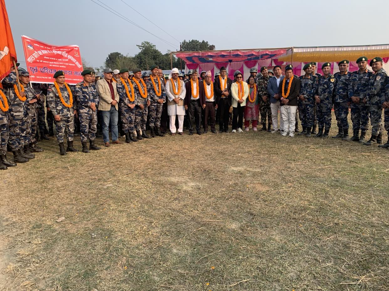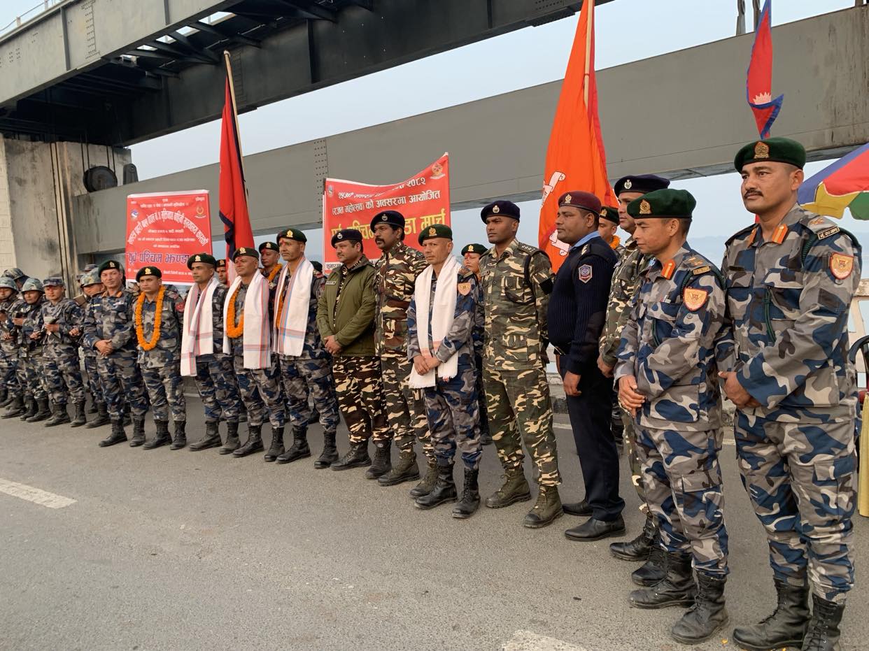 आरपि उपाध्याय / नवलपरासी, ९ माघ सशस्त्र प्रहरी बल नेपाल नं. ५ विन्ध्यावासिनी बाहिनी मुख्यालय चन्द्रौटा, कपिलवस्तुको आयोजनामा २५ औं सशस्त्र प्रहरी दिवस २०८२ रजत महोत्सवको अवसरमा सञ्चालन गरिएको पूर्व–पश्चिम झण्डा मार्च कार्यक्रमअन्तर्गत झण्डा हस्तान्तरण समारोह पश्चिम नवलपरासीको सुस्ता गाउँपालिका–गुदरियामा सम्पन्न भएको छ। सशस्त्र प्रहरी दिवसको अवसरमा २०८२ पौष २० गते गड्डा चौकी, कञ्चनपुरबाट शुभारम्भ भएको झण्डा मार्च कार्यक्रमअन्तर्गत झण्डा पौष ९ गते एक विशेष कार्यक्रमका बीच हस्तान्तरण गरिएको हो। विन्ध्यावासिनी बाहिनी मुख्यालयका प्रतिनिधि तथा सीमा सुरक्षा तालिम केन्द्र बर्दघाटका समादेशक तिर्थराज पौडेलले सशस्त्र प्रहरी बल नेपाल नं. ४ मुक्तिनाथ बाहिनी मुख्यालय पोखराका सहायक बाहिनीपति टोपबहादुर खनाललाई झण्डा हस्तान्तरण गर्नुभएको थियो। झण्डा हस्तान्तरण समारोहमा पश्चिम नवलपरासीका प्रमुख जिल्ला अधिकारी दीपकराज नेपालले विपद् व्यवस्थापनमा सशस्त्र प्रहरी बल नेपालले पुर्याएको योगदान प्रशंसनीय रहेको बताउँदै सीमा सुरक्षा तथा राजस्व चुहावट नियन्त्रणमा बलको भूमिका महत्वपूर्ण रहेको उल्लेख गर्नुभयो। सुस्ता गाउँपालिका अध्यक्ष टेकनारायण उपाध्यायले लामो दूरी पैदल यात्रा गर्दै सम्पन्न गरिएको झण्डा हस्तान्तरण कार्यक्रमले शान्ति र सुरक्षाको बलियो सन्देश दिएको बताउनुभयो। विनयी त्रिवेणी गाउँपालिका अध्यक्ष घनश्याम गिरीले सशस्त्र प्रहरी बलले विभिन्न चुनौती पार गर्दै नागरिकको विश्वास जित्न सफल भएको धारणा राख्नुभयो। सो अवसरमा मुक्तिनाथ बाहिनीका सहायक गुल्मपति टोपबहादुर खनालले २५ वर्षदेखि जनताको सेवा र सुरक्षामा समर्पित सशस्त्र प्रहरी बलले राष्ट्रले दिएको जिम्मेवारी मन, कर्म र वचनले निर्वाह गर्दै आएको बताउनुभयो। कार्यक्रममा सीमा सुरक्षा तालिम केन्द्र बर्दघाटका समादेशक तिर्थराज पौडेलले सुदूरपश्चिमबाट आएको टोली पर्साको ठोरीमा पुगेर झण्डा मार्चको समापन गर्ने जानकारी दिँदै नागरिकको जिउधनको सुरक्षा संगठनको प्रमुख दायित्व भएको स्पष्ट पार्नुभयो। यसै क्रममा नेपाल–भारत अन्तर्राष्ट्रिय सीमा गण्डक ब्यारेज पुलको मध्यभागमा रहेको १८ नम्बर ढोकामा पुग्दा भारतीय अर्धसैनिक बल एस.एस.बी. २१ औं बटालियनका डिप्टी कमाण्डेन्ट अजय कुमार सिंह, विशाल कुमार तथा सहायक कमाण्डेन्ट अवधेश कुमारसहितको टोलीले नेपाली टोलीलाई स्वागत गर्दै आपसी सम्मानसहित मायाको चिनो आदान–प्रदान गरेको सशस्त्र प्रहरी बल नेपाल ३१ नम्बर गुल्मका गुल्मपति लक्ष्मण बरालले जानकारी दिनुभयो। सशस्त्र प्रहरी बल नेपालद्वारा सञ्चालन गरिएको झण्डा मार्च पासको समापन आगामी मा