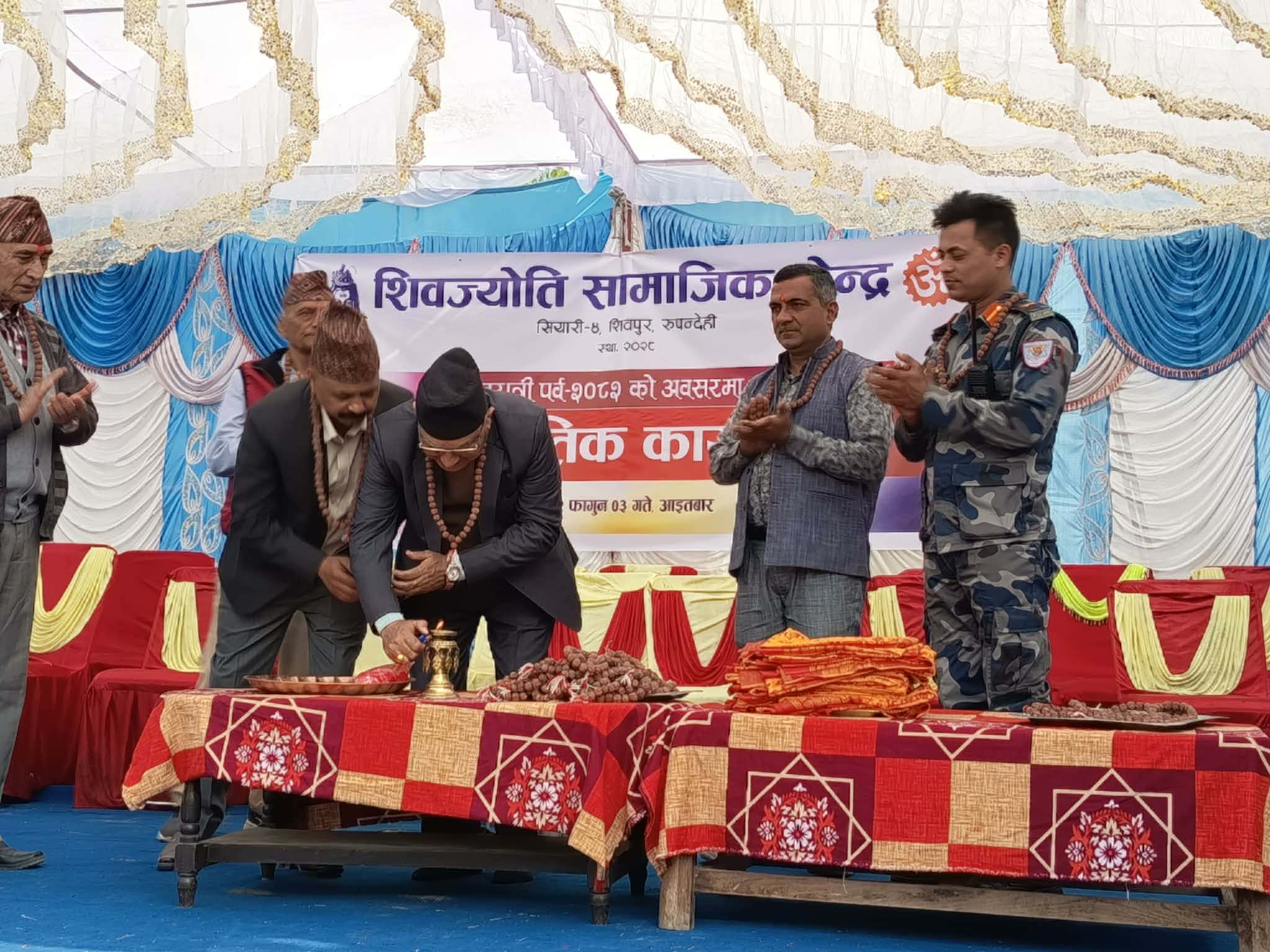 तुलसीराम पौडेल/सियारी,४ फाल्गुन रुपन्देहीको सियारी गाउँपालिका -४ शिवपुर स्थित श्री सिद्धेश्वर शिव मन्दिर परिसरमा श्री शिवज्योती सामाजिक केन्द्रको आयोजनामा म्याराथुन दौड प्रतियोगिता रक्तदान ,कुर्सी दौड प्रतियोगिता ,हण्डिफोर प्रतियोगिता सहित वृहत् सास्कृतिक कार्यक्रम सम्पन्न भएको छ। हरेक बर्ष जस्तै निरन्तररुपमा यस बर्ष पनि महाशिवरात्रीको शुभ अवसरमा श्री शिव ज्योती सामाजिक केन्द्रको विभिन्न प्रतियोगिता सहित सास्कृतिक कार्यक्रम आयोजना गरिएको हो । शिवरात्रीको शुभ दिन आइतबार सम्पन्न म्याराथुन दौड प्रतियोगितामा गैडहवा -८ रुपन्देहीका उमेश बरइ प्रथम भएका छन् ।त्यसै गरि सियारी -७ का मनोज केवट दोस्रो र सियारी -३ का सचिन कुर्मी तेस्रो भएका छन् ।सम्पन्न कुर्सी दौड प्रतियोगितामा सियारी -४ कि विनिता भुसाल विजयी भएकि छन् । शिवरात्रीकै शुव अवसरमा सम्पन्न रक्तदान कार्यक्रममा ४४ जनाले रक्तदान गरेका थिए जसबाट ४४ युनिट रगत संकलन भएको आयोजकले जानकारी दिएका छन् । रक्तदान कार्यक्रम श्री शिवज्योती सामाजिक केन्द्रको आयोजना र नेपाल रेडक्रस सोसाइटी रक्तसञ्चार इकाई सिद्वार्थ नगरको प्राविधिक सहयोगमा सम्पन्न भएको हो । सास्कृतिक कार्यक्रममा संस्कार इङलिस बोर्डिङ स्कुल,दुर्गा शैक्षिक गृह र बाल कल्याण प्रावीका नृत्य प्रस्तुतिहरु , रास्टिय हास्य कलाकार सुवोध गौतमका बेजोड प्रस्तुती , ड्रप बिट एकेडेमी – बुटवलका कलाकारहरुको प्रस्तुति र स्थानीय कलाकारको बेजोड प्रस्तुति रहेको थियोे । कार्यक्रम श्री शिवज्योती सामाजिक केन्द्रका अध्यक्ष प्रकाश पोख्रेलको अध्यक्षता तथा सियारी गाउँपालिका अध्यक्ष थानेस्वर घिमिरेको प्रमुख आतिथ्यतामा सम्पन्न भएको हो । संस्थाका सदस्य यमलाल आचार्यको स्वागत मन्तव्य एवं संस्थाका सचिव सन्दर्भ सिलवालको संचालनमा सम्पन्न कार्यक्रममा पब्लिक माविका अध्यक्ष खिमबहादुर ज्ञवाली लगायतले शुभकामना मन्तव्य दिनुभएको थियोे । कार्यक्रम संस्थाका उपसचिव उमेश खत्रीको संयोजकत्वमा सम्पन्न भएको थियोे । राष्ट्रिय दैनिक राष्ट्रिय दैनिक एक लोकप्रिय नेपाली समाचार पोर्टल हो। हामी सत्य तथ्य निश्पक्ष र सन्तुलित समाचार सम्प्रेषण गर्ने तर्फ उद्दत छौँ । हाम्रा टोल,समाज, शहर वा आम जनताका चुलो चौको देखि सदन सम्म अथवा समाजका उदाहरणीय ब्यक्ति, रास्ट्रका पहरेदार हरेक बिषय हाम्रा समाचारका श्रोत हुन् । आवाज बिहिनहरुको आवाजमा साथ अनि सरकारको बेथितिमा हाम्रो निगरानी हुनेछ । हामी राजनितीको रंग भर्दैनौं तर राजनितीको चेतना अवश्य भर्ने छौं ।